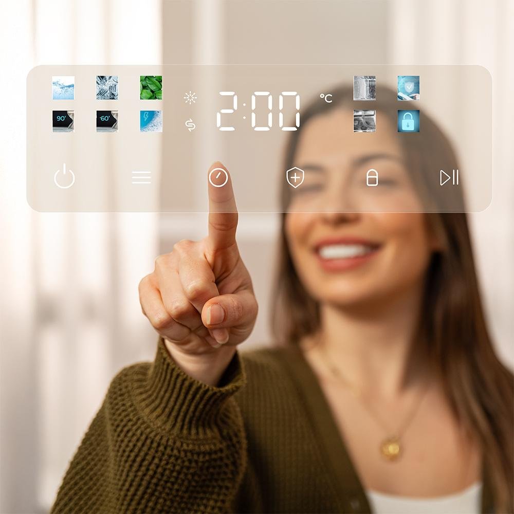 Selecciona el programa ideal con un solo toque desde su panel táctil, diseñado para ser atractivo e intuitivo, permitiendo un lavado a medida sin complicaciones.
