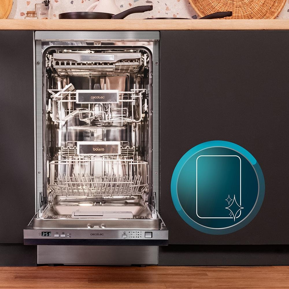 Bolero Aguazero 4101 Full-BI E Lavavajillas integrable de 45cm, Clase E, 11 cubiertos, 6 programas con Dual Zone Wash, Auto Wash, Delay Start y Electronic AquaStop.