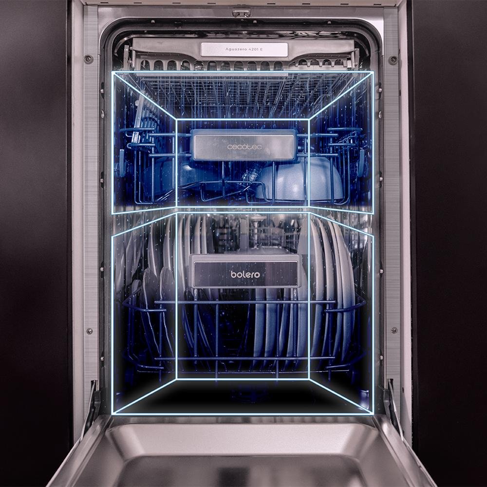 Bolero Aguazero 4201 Inox E Lavavajillas de 45cm, Clase E, 11 cubiertos, 6 programas con Dual Zone Wash, Delay Start y Electronic AquaStop.