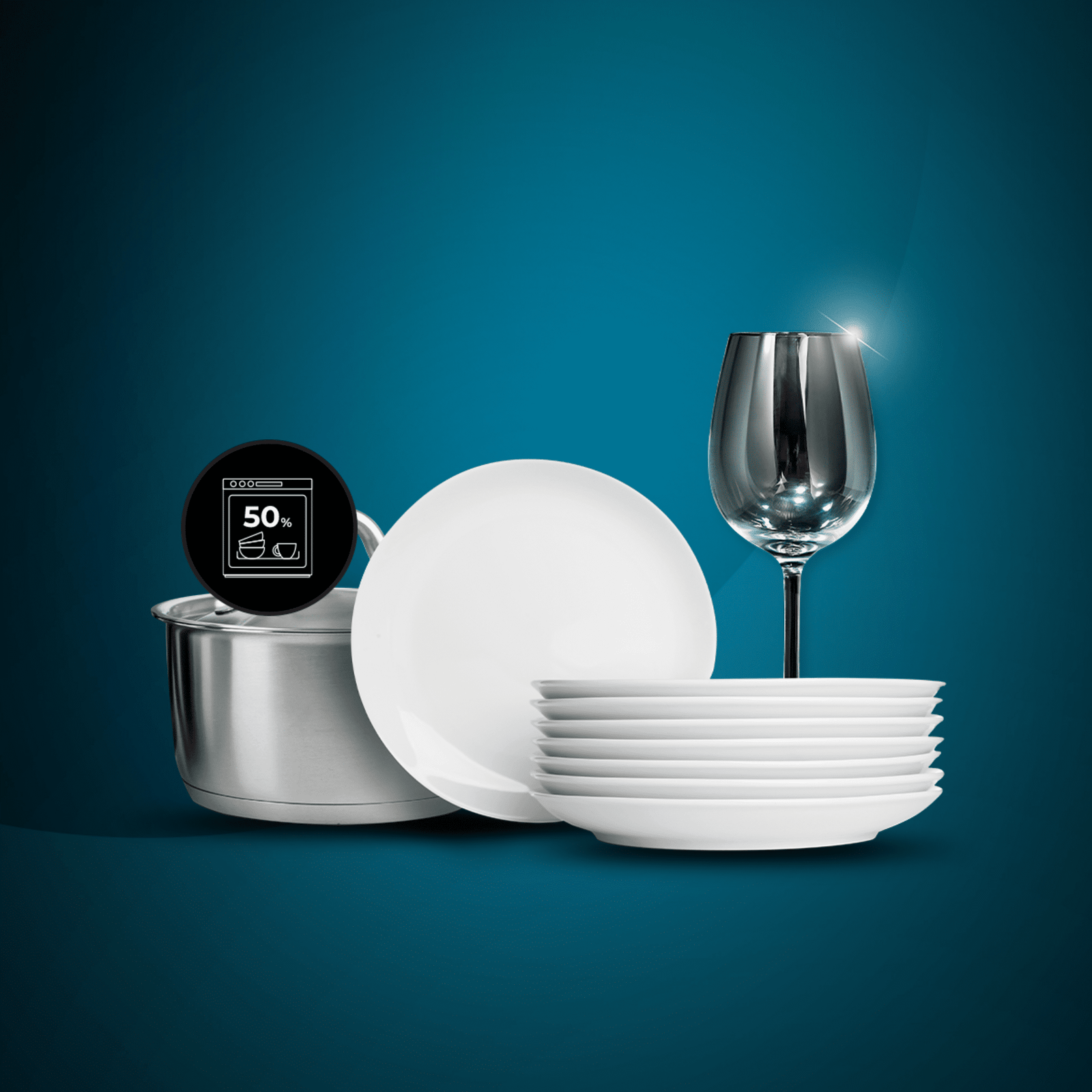 Gran capacidad de hasta 12 cubiertos para que puedas lavar todo lo que necesites independientemente de la situación en la que te encuentres: a diario, una celebración, etc. 1 cubierto incluye un plato llano, hondo, de postre, platillo de café, taza, vaso, cuchillo, tenedor, cuchara normal y de postre y una cucharilla de café.