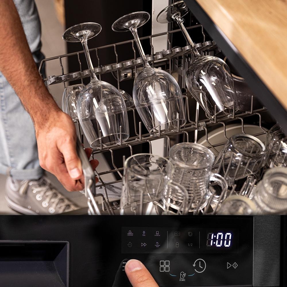 No importa si el lavavajillas no está completamente lleno; selecciona el programa de media carga y disfruta de los mismos resultados con la mitad del consumo.