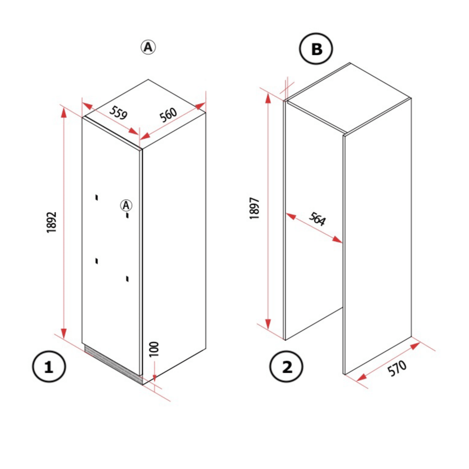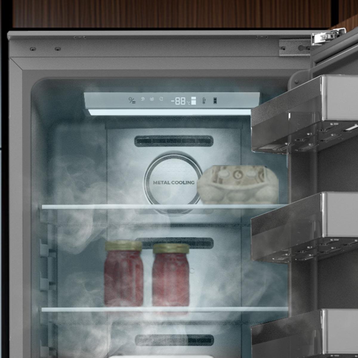 Frigorífico 1 puerta integrable de puerta fija, 187×55,9cm, 222 Litros, Metal Cooling, Cavidad Interior gris prémium, Fast Freezing, modo Vacaciones y Clase Energética E.