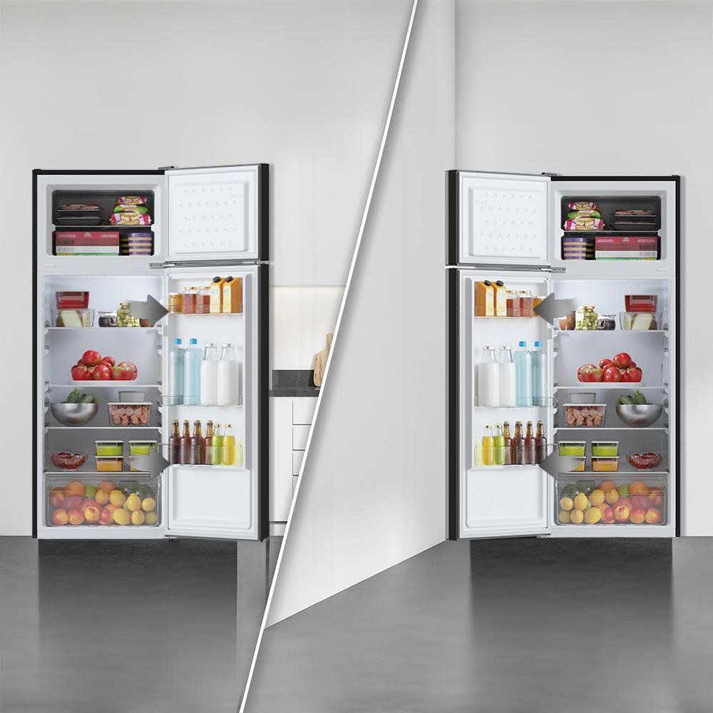 ¿No sabes cómo poner tu frigo? No te preocupes, su puerta es reversible para que puedas orientarla hacia el lado que mejor se adapte al espacio disponible.