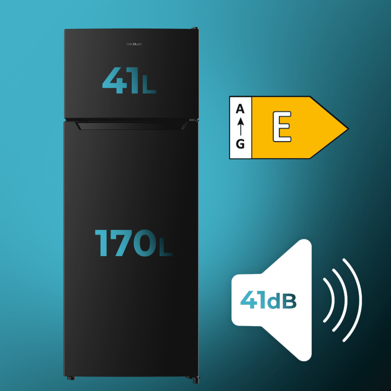 Bolero CoolMarket 2D 211 Black E Frigorífico de dos puertas negro, 143 de alto y 54 de ancho, 211 litros y clase energética E.