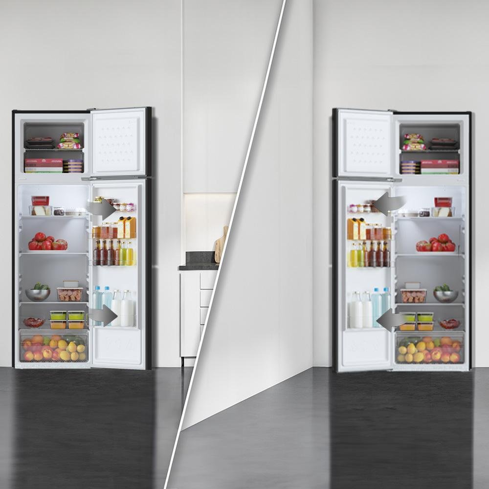 ¿No sabes cómo poner tu frigo? No te preocupes, su puerta es reversible para que puedas orientarla hacia el lado que mejor se adapte al espacio disponible.