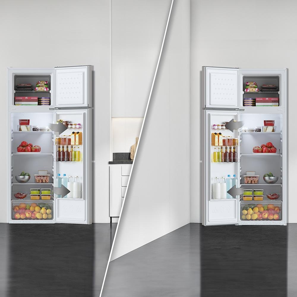 ¿No sabes cómo poner tu frigo? No te preocupes, su puerta es reversible para que puedas orientarla hacia el lado que mejor se adapte al espacio disponible.