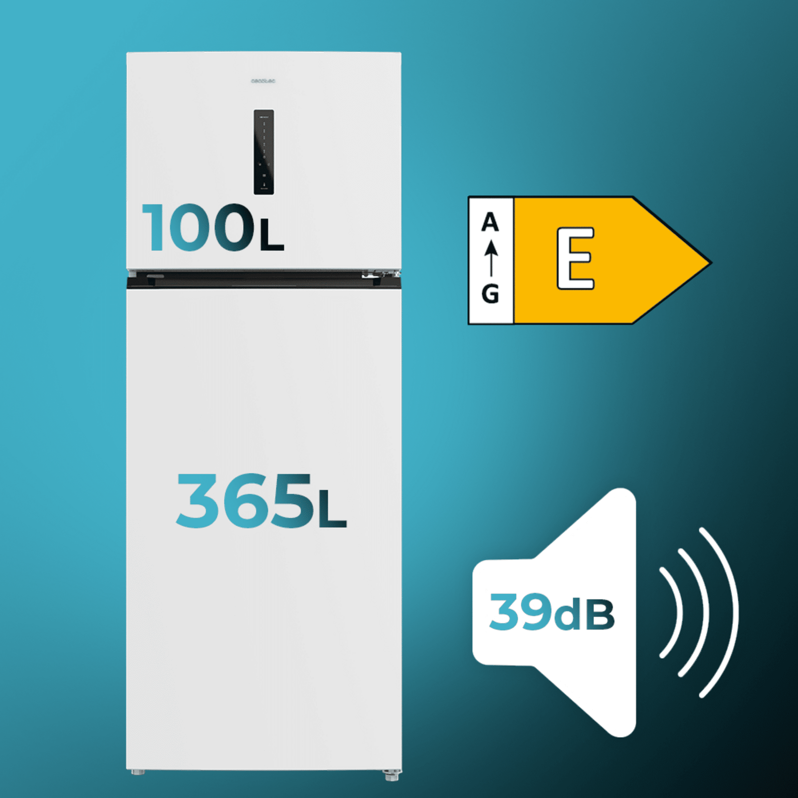 Bolero CoolMarket 2D 465 NF White E Frigorífico de 2 puertas color blanco de 185,5cm de alto y 70,3 cm de ancho con gran capacidad de 465 Litros y Motor Inverter con 10 años de garantía. Sistema de conservación No Frost y clase energética E.