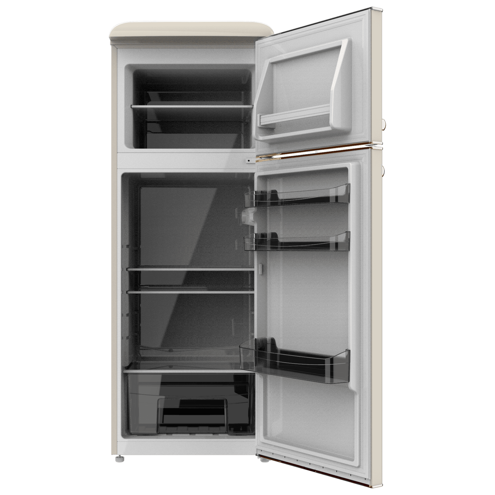 Bolero CoolMarket 2D Origin 215 Beige E Frigorífico retro 2D Origin Red con capacidad de 215L, clase E, Luz interior, tirador gold, bandejas cristal y control de temperatura.