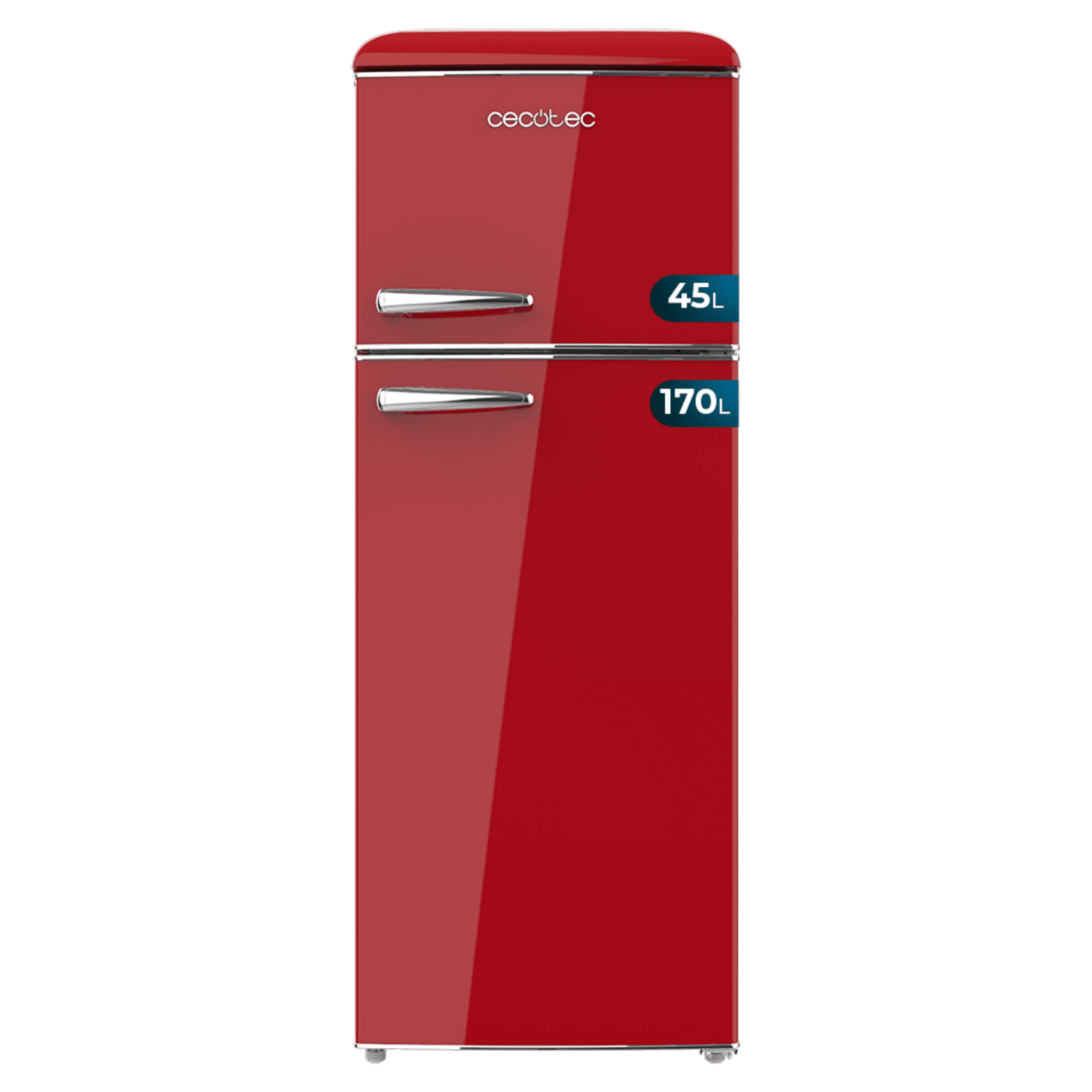 Bolero CoolMarket 2D Origin 215 Red E Frigorífico retro de dos puertas rojo de 148,2 cm de alto y 55,2 cm de ancho con capacidad 215L, clase energética E, iluminación interior y tirador cromado.