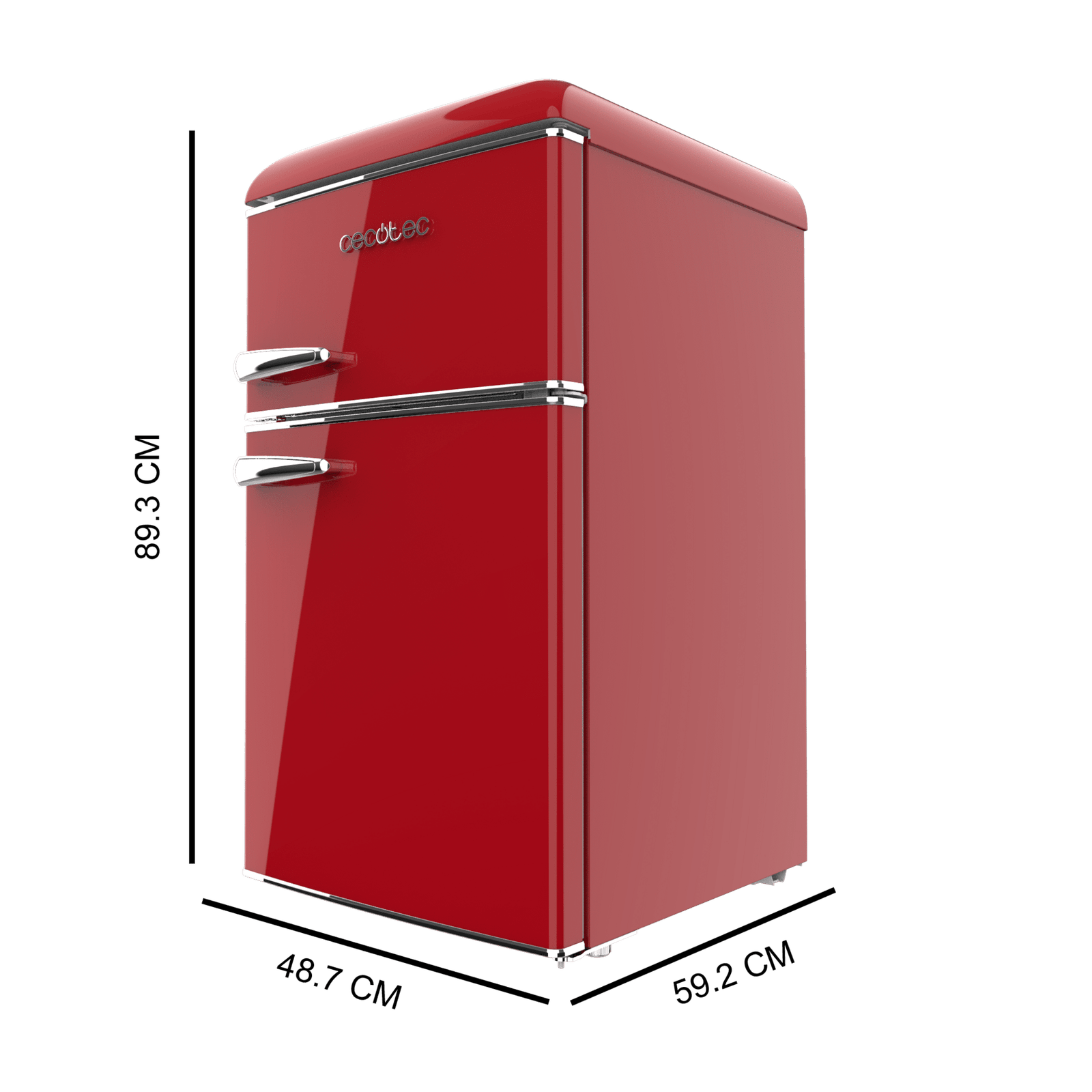 Bolero CoolMarket 2D Origin 86 Red E Mini frigorífico retro de dos puertas rojo de 89,3cm de alto y 48,7 de ancho con capacidad de 86L, clase energética E, LED interior y tirador cromado.