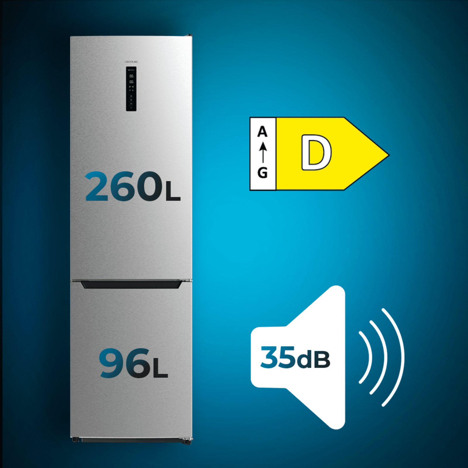 - Clase D: clasificación energética óptima para un frigorífico.