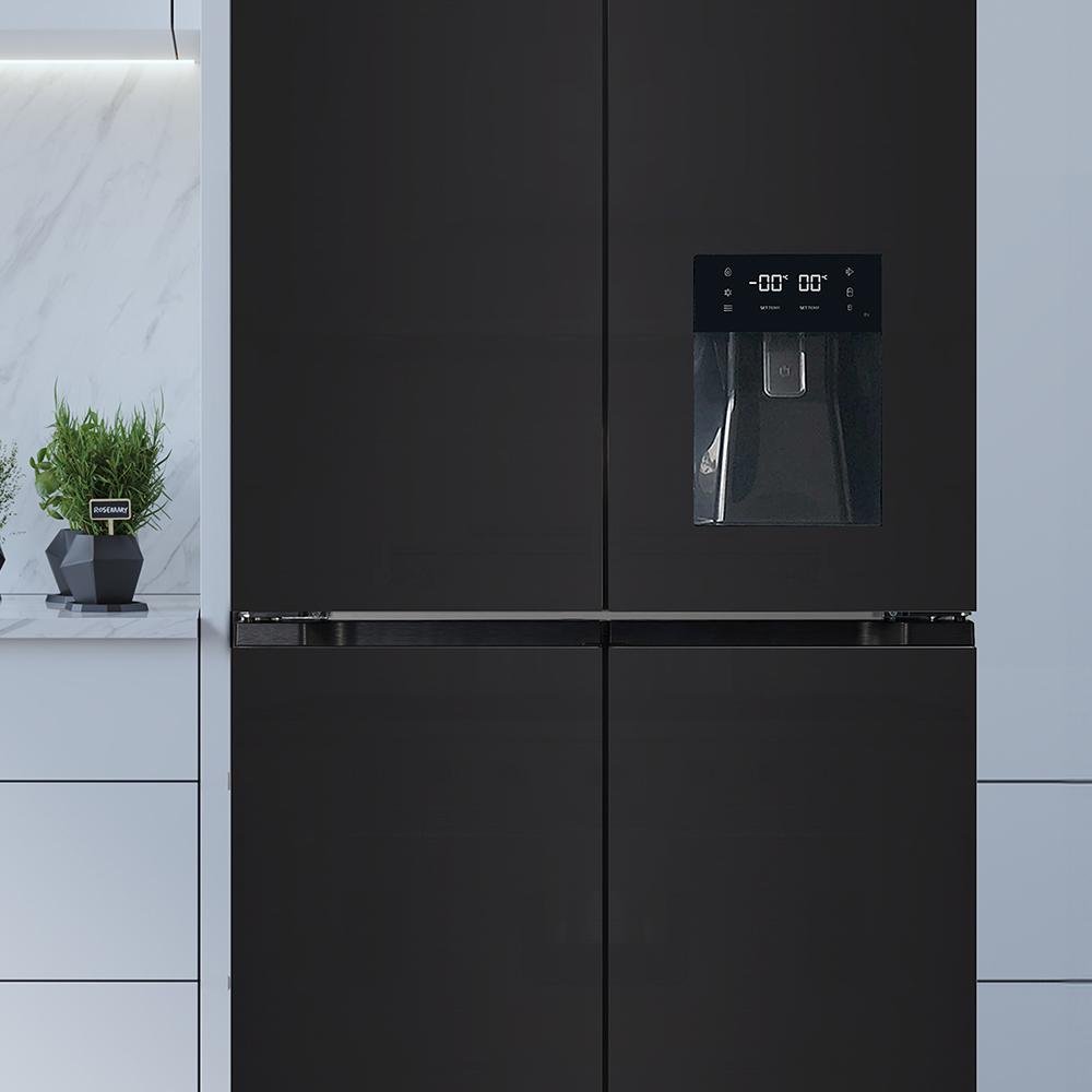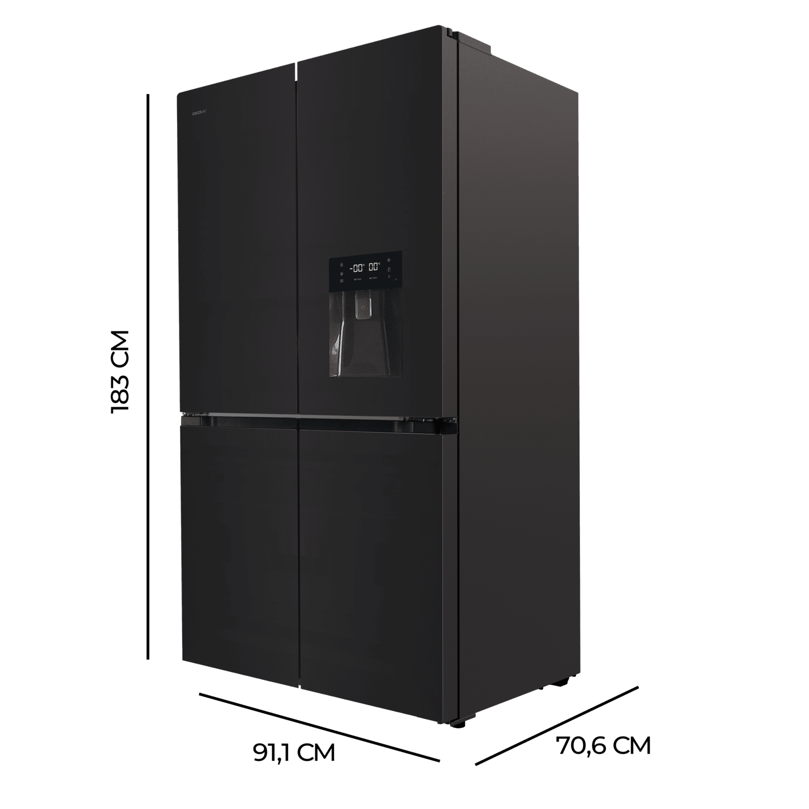 Bolero CoolMarket 4D 564 Glass E Frigorífico 4 puertas Glass con una gran capacidad de 564 L, 183 cm de alto, 91 cm de ancho, con dispensador de agua, clase energética E y motor inverter plus. Además, cuenta con distintos modos como Fast Cooling y Fast Freezing, así como sistemas como MultiAirFlow, Total NoFrost o Metal Cooling.