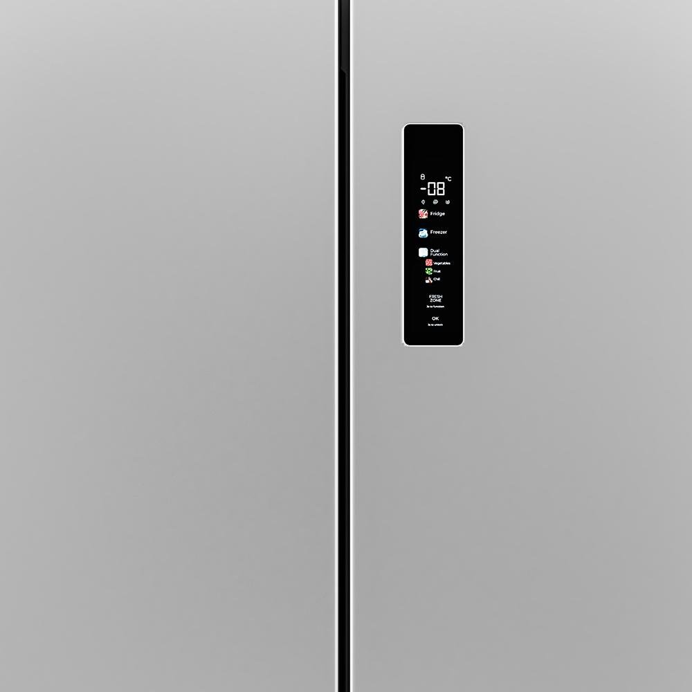 Bolero CoolMarket 4D 601 Inox E Frigorífico de 4 Puertas acero inoxidable, Capacidad de 601 Litros, Ancho de 90.5 cm alto de 177.5 cm, Sistema de conservación NoFrost, Metal Cooling, Cajón Control de Humedad y Cajón convertible, Motor Inverter Plus silencioso y de bajo consumo, Display digital exterior, Clasificación energética Clase E, Funciones Fast Cooling y Fast Freezing, Alarma de puerta Abierta y Alarma temperatura y mal funcionamiento, Modo ECO