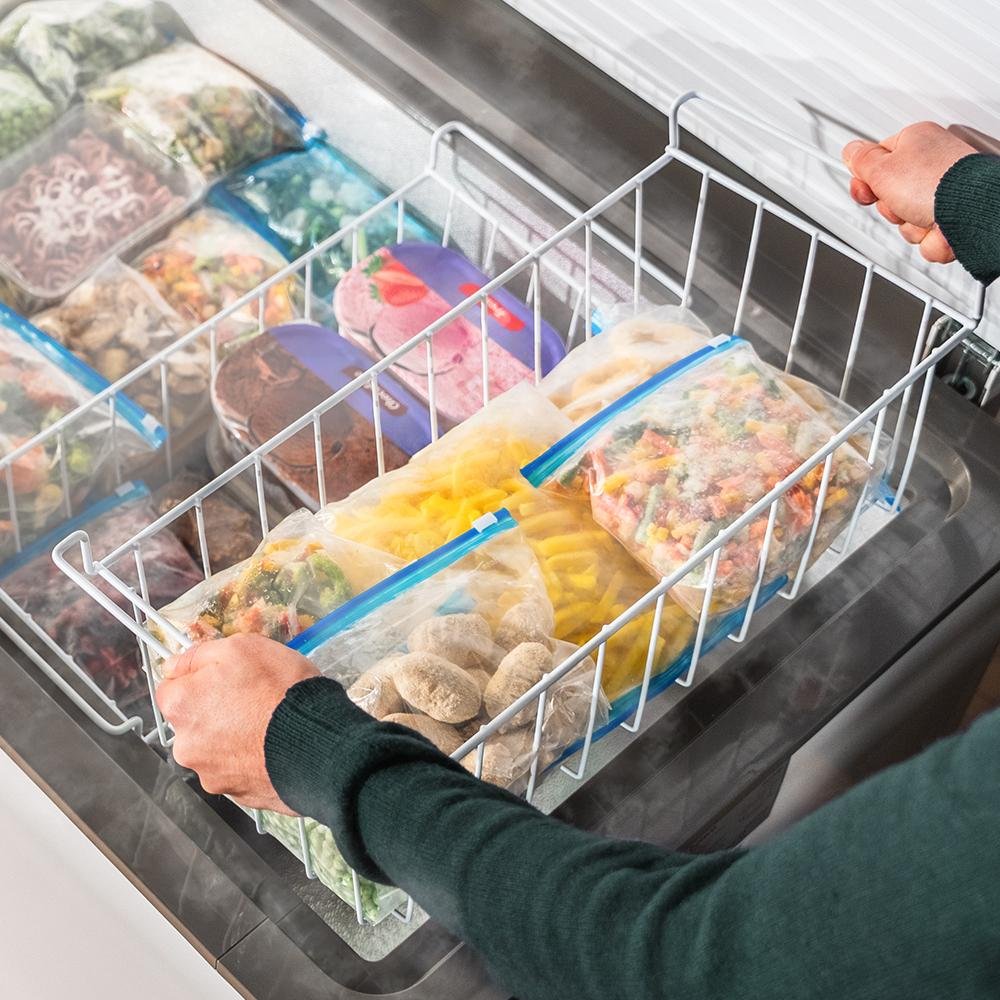 Congela todos tus alimentos gracias a su diseño horizontal con 400 L, un gran interior que aporta comodidad para ti y frío para tus alimentos.
