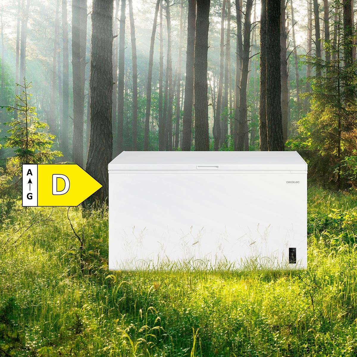 Bolero CoolMarket Chest 418P White D Cecotec – Congelador Horizontal 418L, Cesta con asas, Control Electrónico LED, Ruedas EasyMove, Clase Energética D, UltraContact D-Cool, Dual Function, Puerta ZeroG (80º-30º) y Fast Freezing.