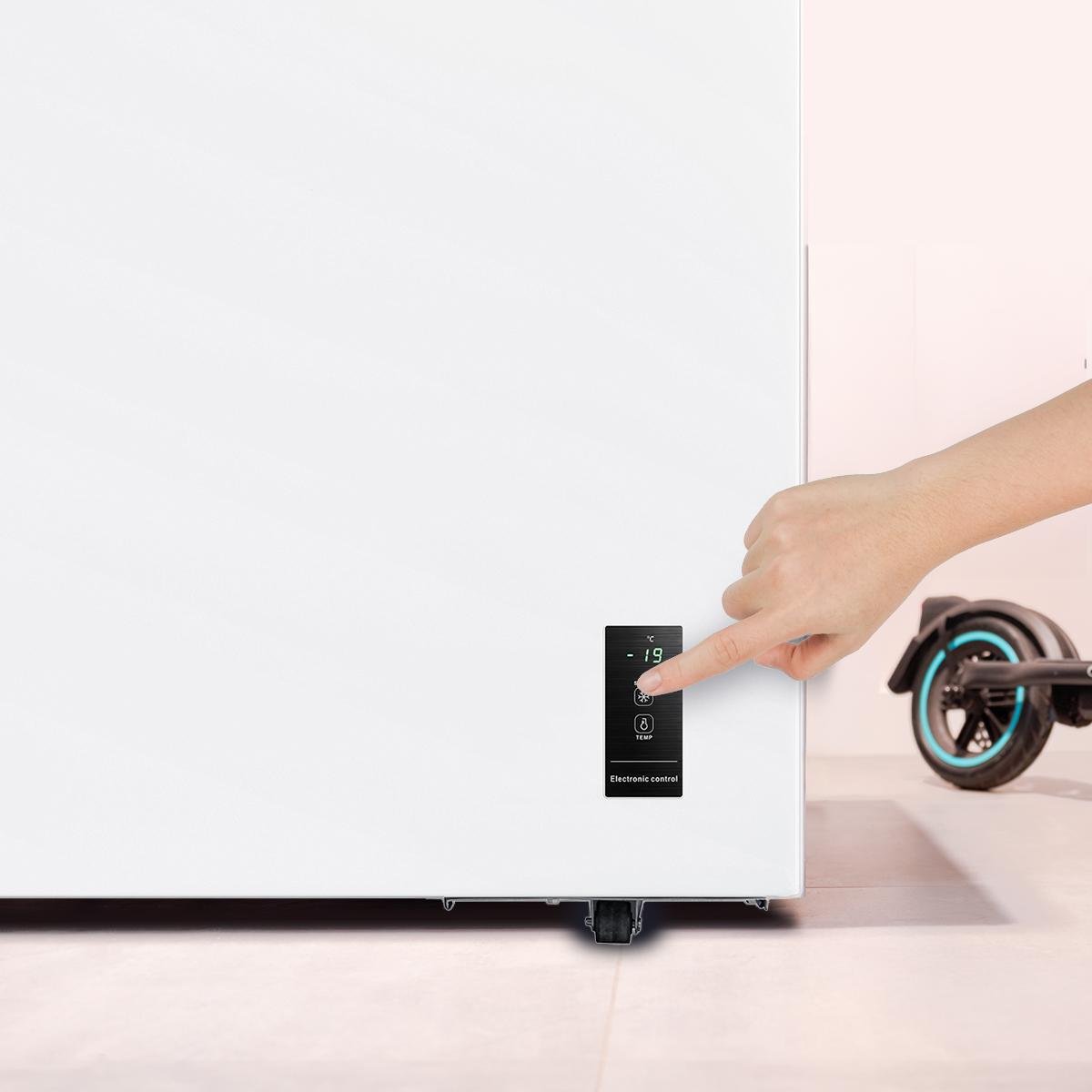 - Muévelo sin esfuerzo. Ruedas para movilidad: sistema de desplazamiento integrado que permite reubicar el congelador sin esfuerzo. Ideal para limpieza, reorganización de espacios o cambios de ubicación.