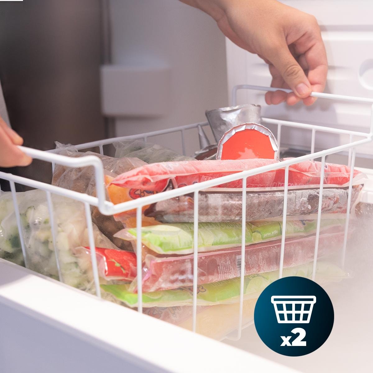 El congelador incluye una cesta interior para que puedas optimizar al máximo su espacio interior y guardar tu comida perfectamente clasificada.