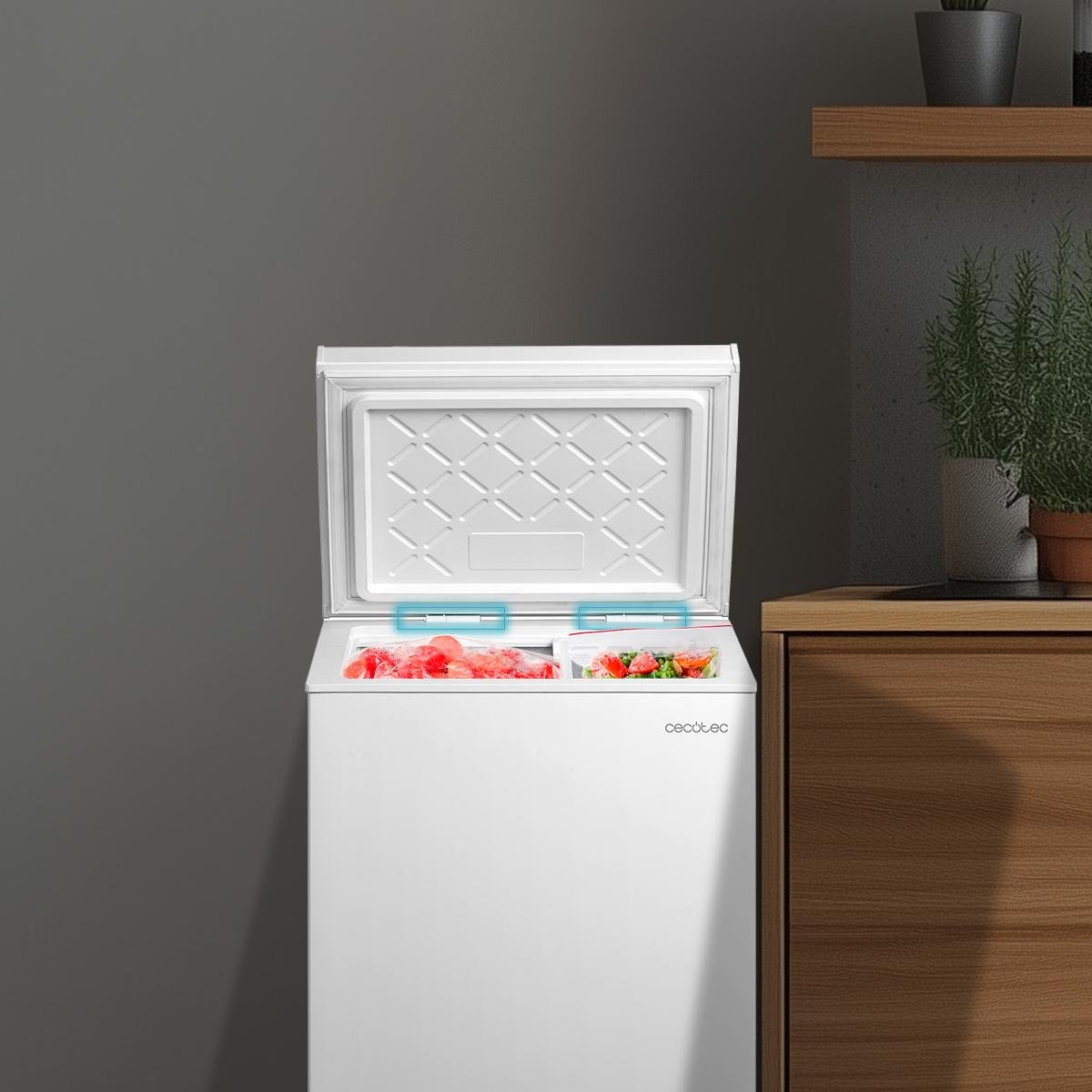 - Conservación superior y gran capacidad. Congelador Chest: permite guardar gran cantidad de alimentos conservado sus propiedades en perfecto estado por más tiempo.