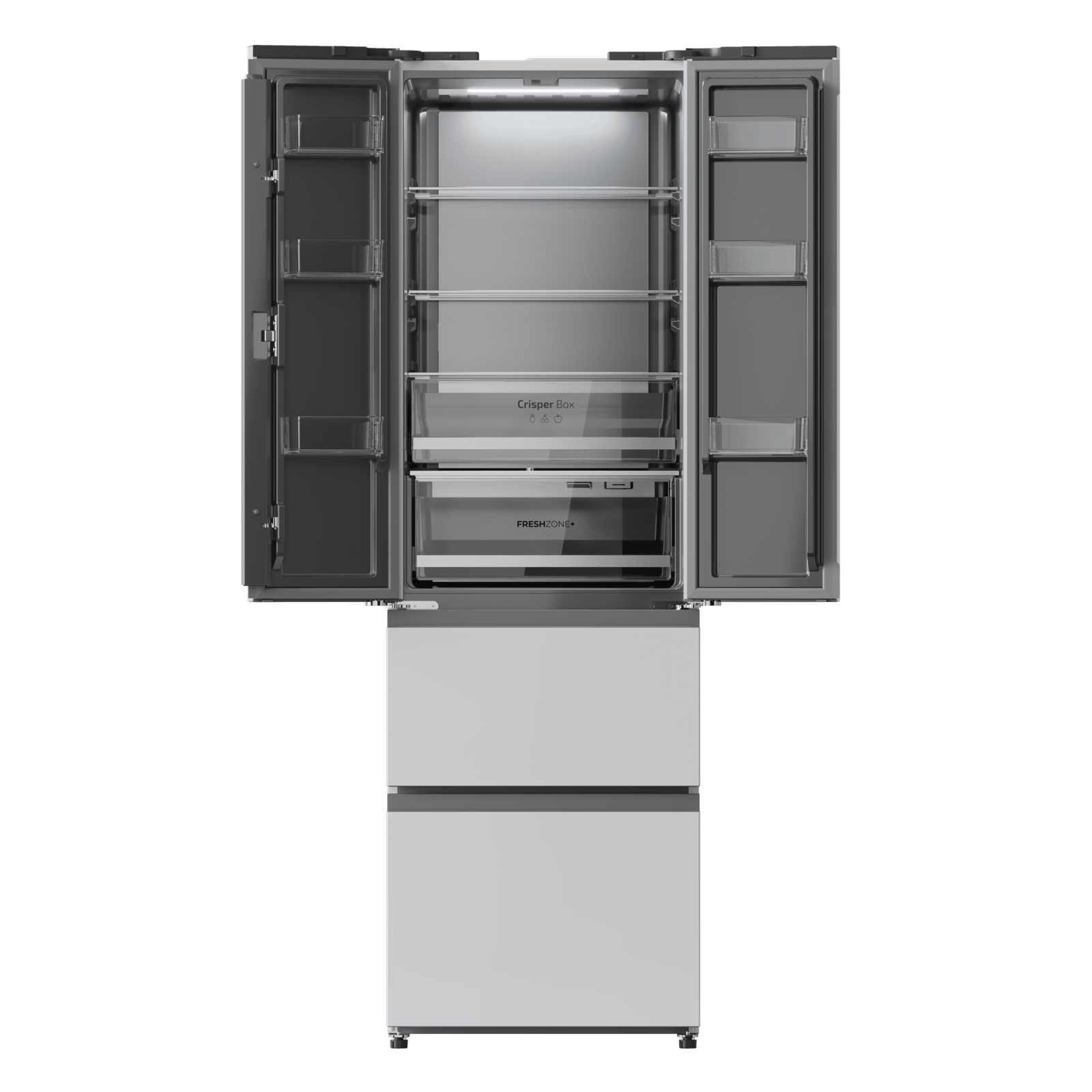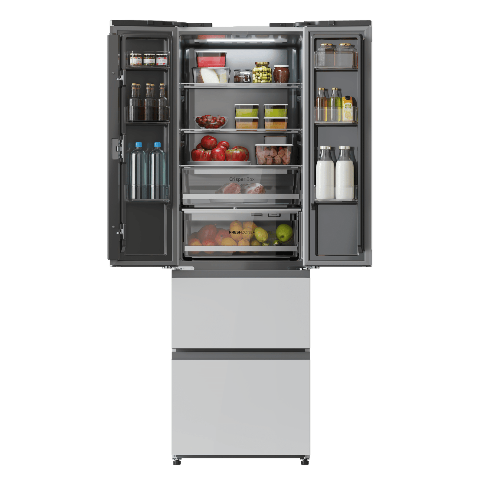 Domina el frío con su diseño de 4 puertas, 2 horizontales y 2 verticales, que te permiten abrir por zonas, mejorando la comodidad y la conservación del frío, al mismo tiempo que ahorra energía.