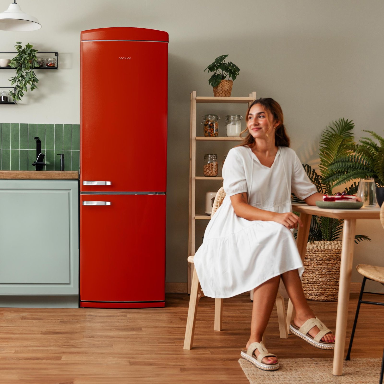 • Frigorífico combi retro: combina un frigorífico (parte superior) con un congelador (parte inferior), con un diseño retro para darle un toque vintage a tu cocina.