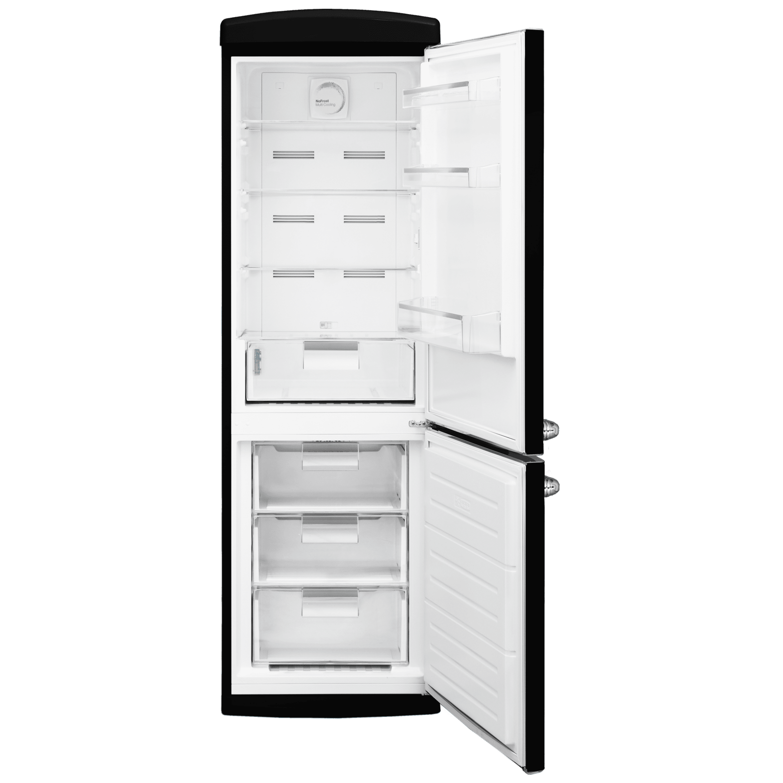 Bolero CoolMarket Combi Origin 294+ Black E Frigorífico retro combi negro, 190cm de alto y 60 de ancho, capacidad 294L, Total No Frost, clase energética E, Multi Cooling, Ultra Fresh, Convertible Box, Multi Air Flow, Fast Freezing, Modo Eco, Botellero y Alarma en puerta.