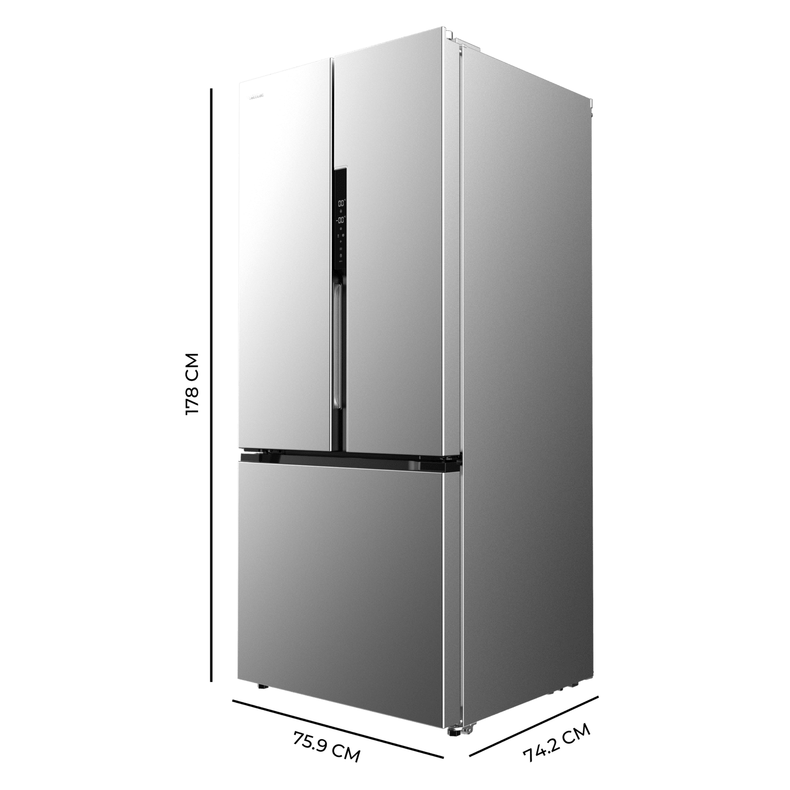 Bolero CoolMarket FD 499 Inox E Frigorífico puerta francesa inox, 178 cm de alto, 75,9 cm de ancho y 74,2 cm de profundo, capacidad 499L, compresor Inverter Plus, Total No Frost, clase energética E. Además, cuenta con distintos modos como Fast Cooling y Fast Freezing, así como sistemas como MultiAirFlow, Metal Cooling y modo vacaciones.