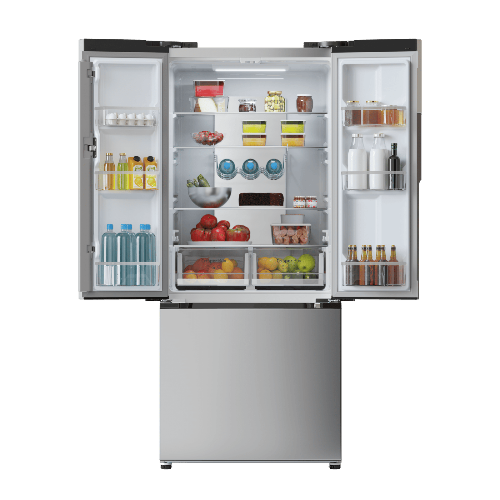 Nuestro frigorífico French Door dispone de dos puertas verticales y una horizontal que te permitirán organizar eficientemente todos tus alimentos maximizando sus 499 litros de capacidad.