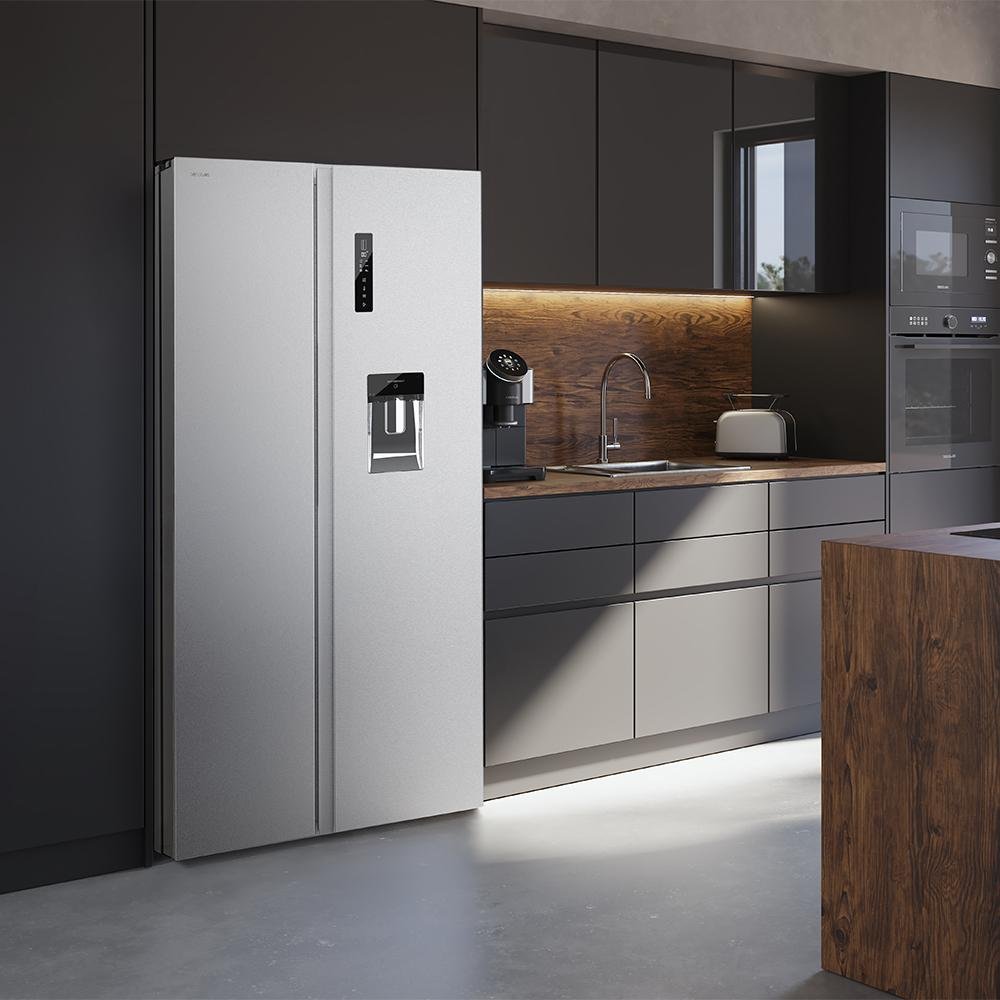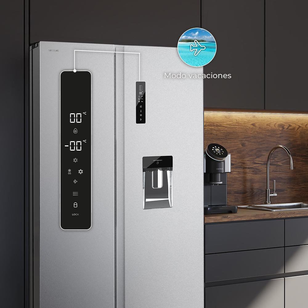 Bolero CoolMarket SBS 559 Inox D Frigorífico americano con 559 litros de capacidad, 177×91 cm, Clase D, NoFrost, Compresor Inverter, Dispensador de Agua con depósito, Display en puerta, Fast Freezing, Modo Smart, MultiAirFlow