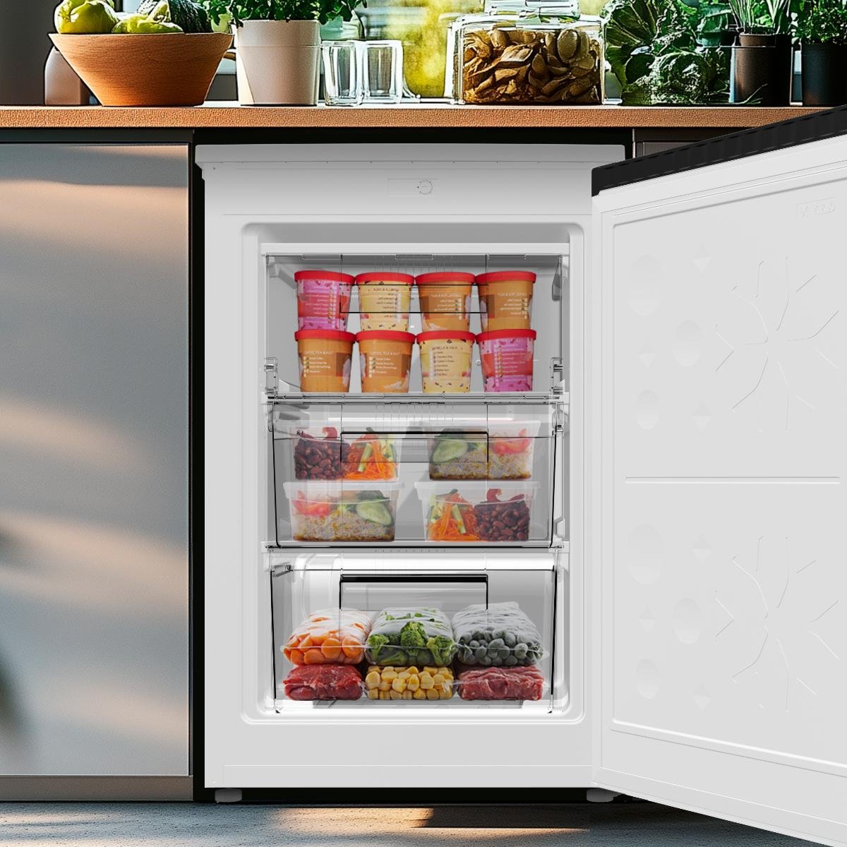 El congelador de sobremesa cuenta con una capacidad de 85 L, ideal para conservar gran cantidad de alimentos en perfectas condiciones durante más tiempo.