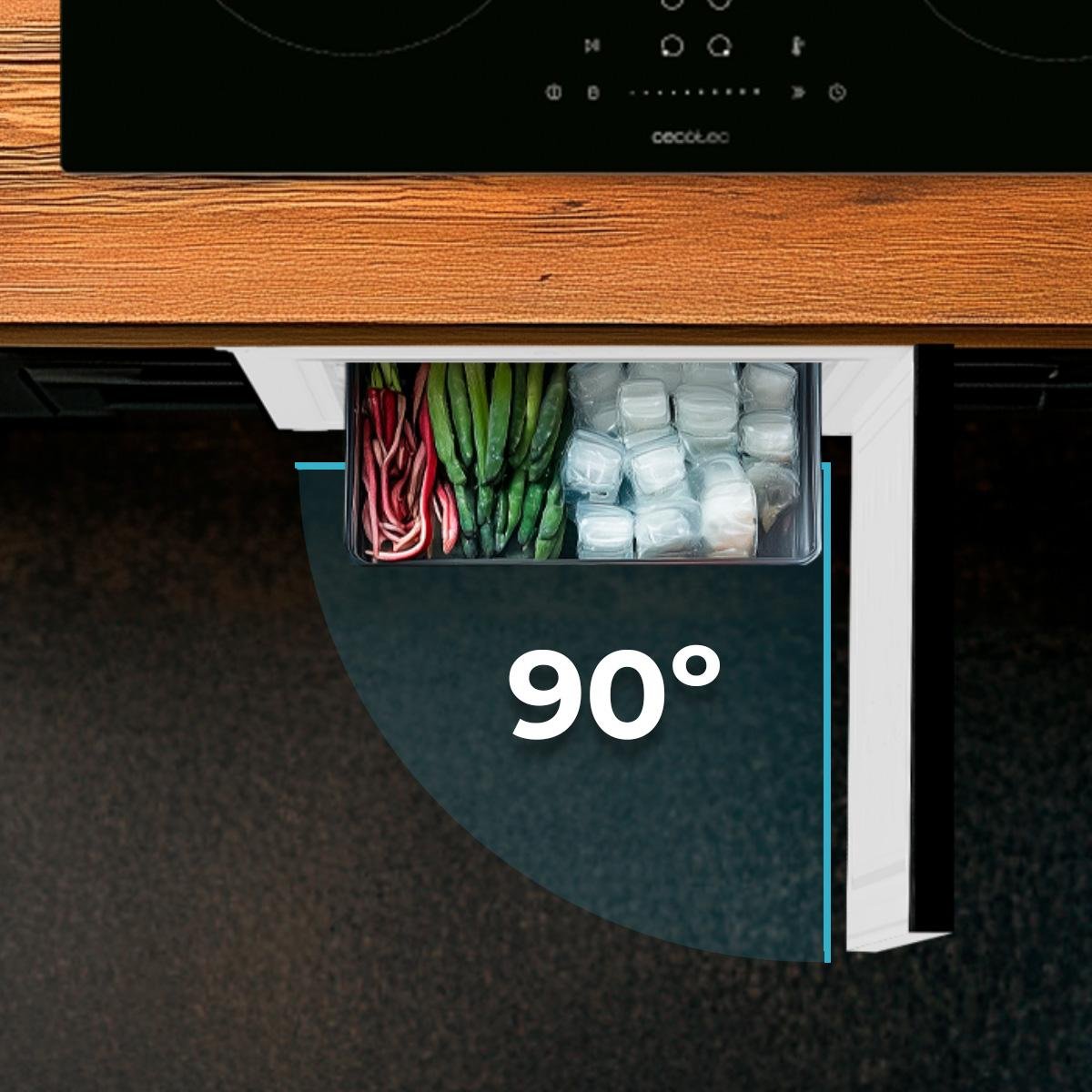 - Fácil extracción de los cajones con la apertura de la puerta a tan solo 90º. El diseño delgado de su puerta facilita la ergonomía del electrodoméstico y acceso a los alimentos.