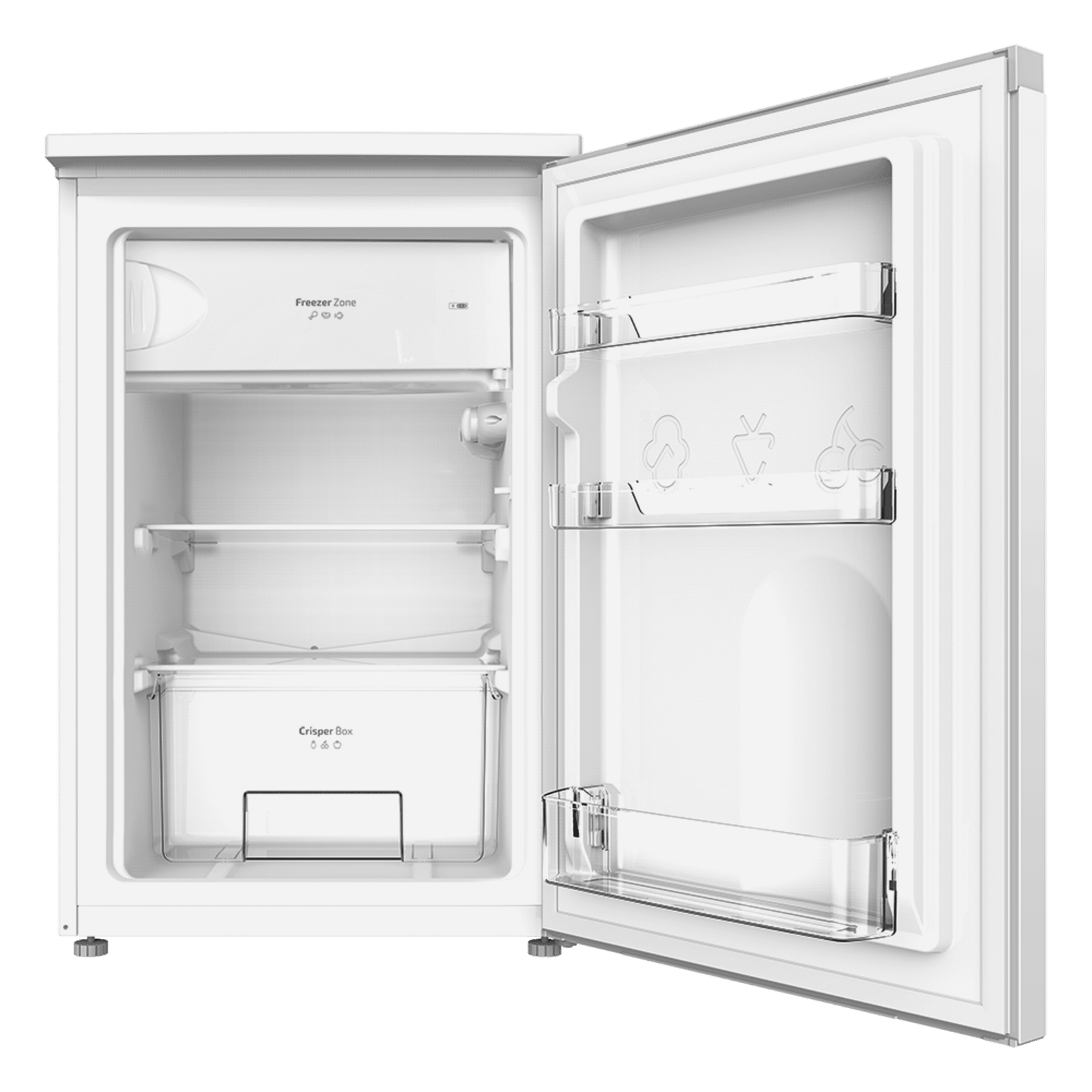 Bolero CoolMarket TT 107 White Mini frigorífico de 107 litros de capacidad, color blanco, clase E, temperatura regulable, Crisper Box, cajón congelador y nivel sonoro bajo.