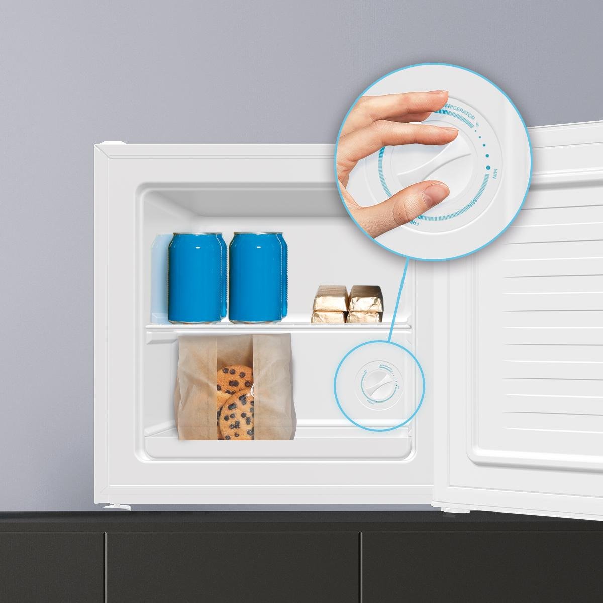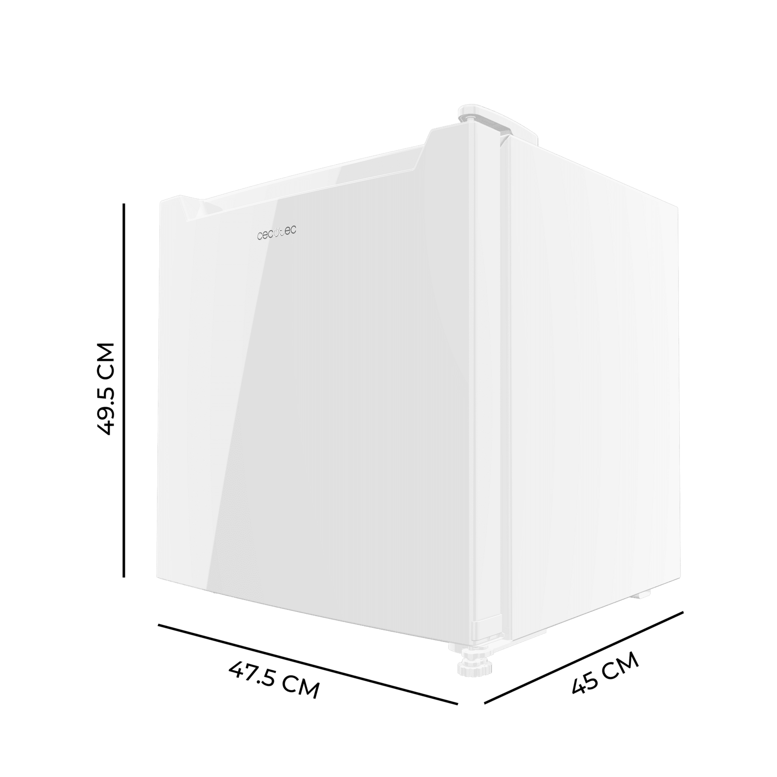 - Medidas mini frigorífico: 47,4 x 44,7 x 49,6 cm (ancho x fondo x alto).