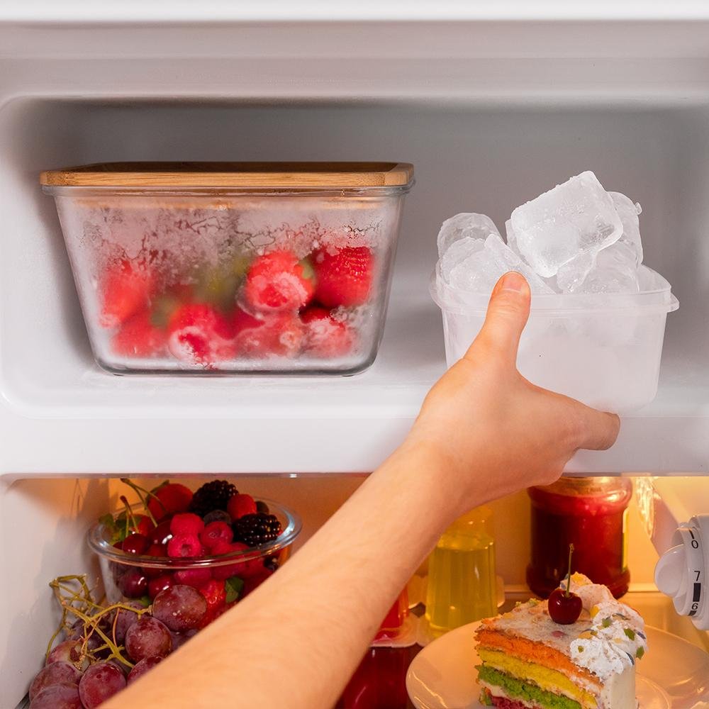- Icebox: la mini nevera cuenta con cajón para hacer hielo. Ten siempre hielo a tu disposición y enfría tus bebidas o preparaciones en cualquier momento.