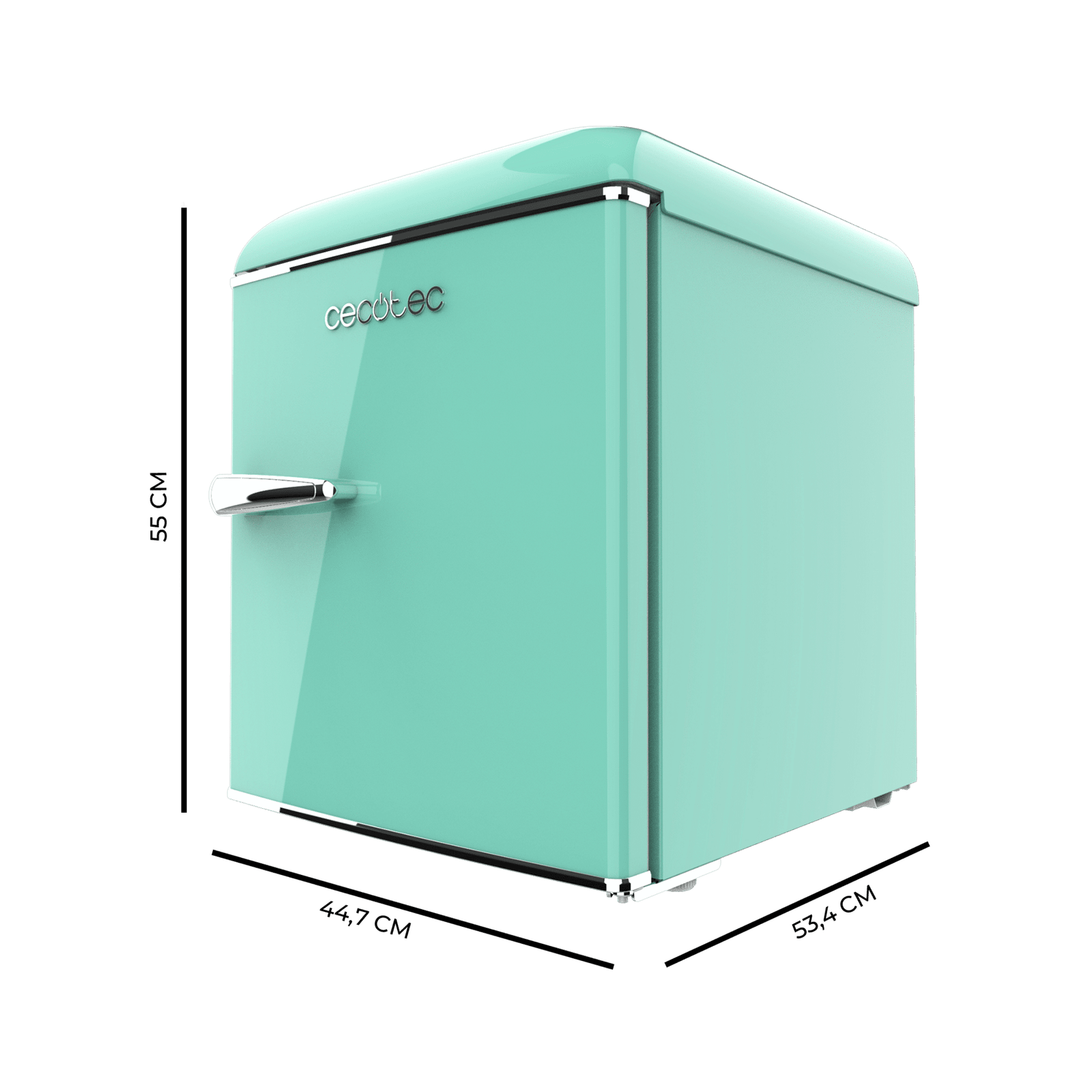 - Medidas mini frigorífico (ancho x fondo x alto): 44,7 x 53,4 x 55 cm