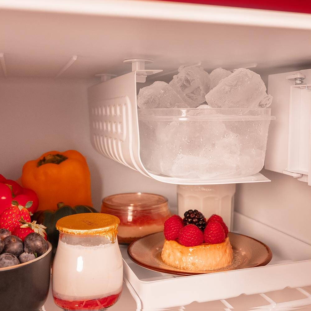 • Icebox: la mini nevera cuenta con cajón para hacer hielo, para que siempre tengas cubitos a tu disposición y puedas enfriar tus bebidas o preparaciones en cualquier momento.
