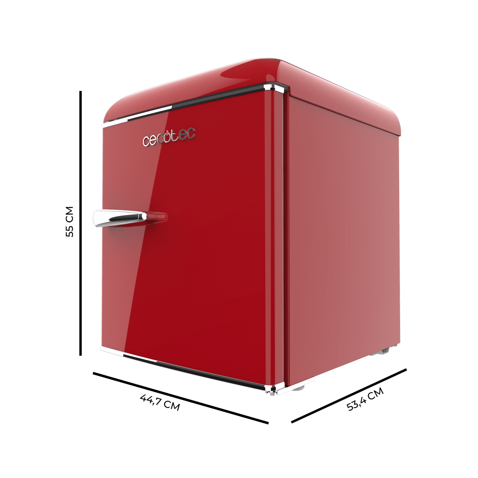 • Medidas mini frigorífico (ancho x fondo x alto): 44,7 x 53,4 x 55 cm