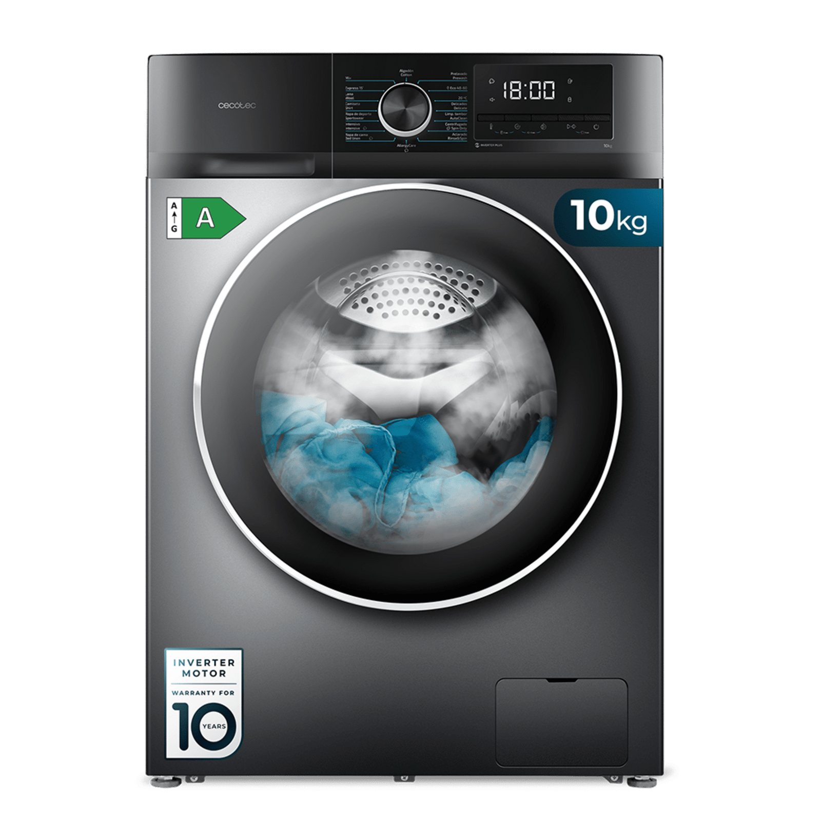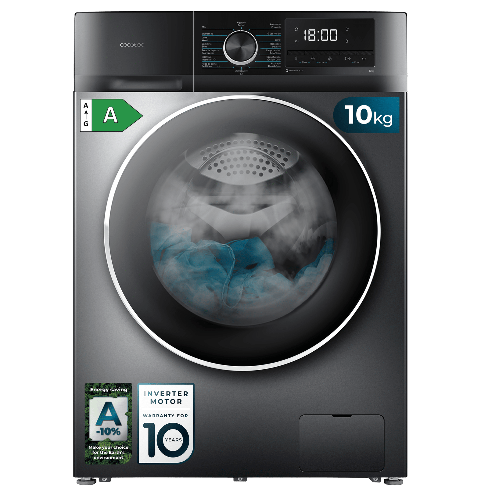 - Motor Inverter Plus: rendimiento de alta calidad y máxima durabilidad. Ahorro de energía, con disminución de vibraciones y ruido. Gracias al motor Inverter la lavadora hará menos ruido durante su funcionamiento. Además favorece al ahorro energético.