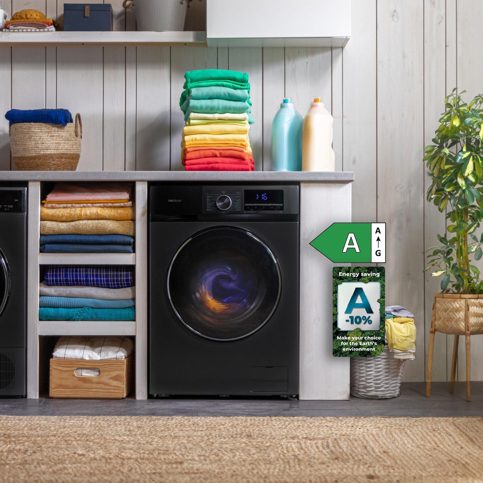Máximo ahorro energético* en cada lavado para que cuides tu ropa a la vez que cuidas del planeta. *De acuerdo con la clase de eficiencia energética A obtenida según la normativa de etiquetado energético