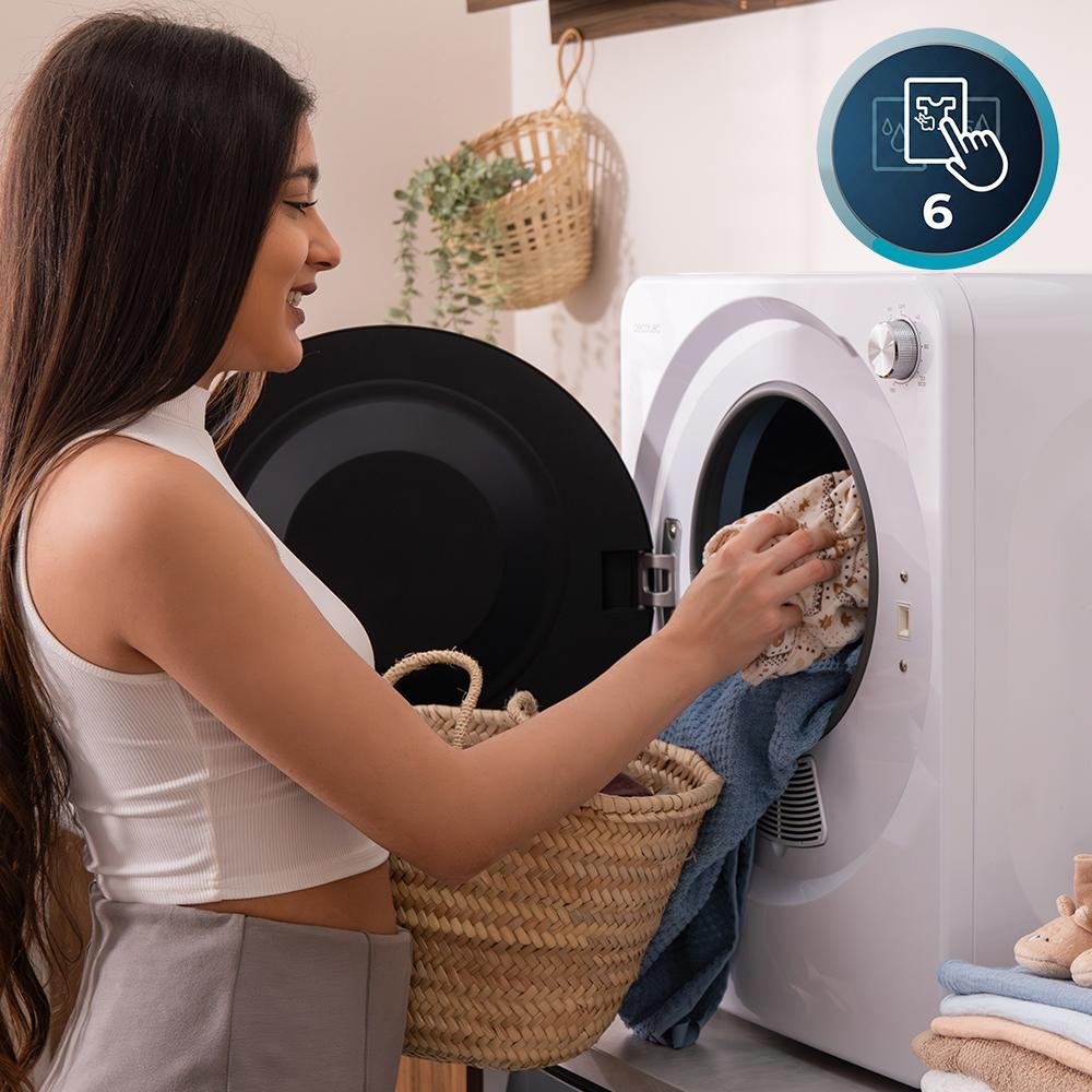 No hay piso o apartamento demasiado pequeño, esta secadora compacta es perfecta para hogares con espacio limitado, sus 950 W y su capacidad de hasta 2,5 kg garantizan un secado rápido y eficiente.