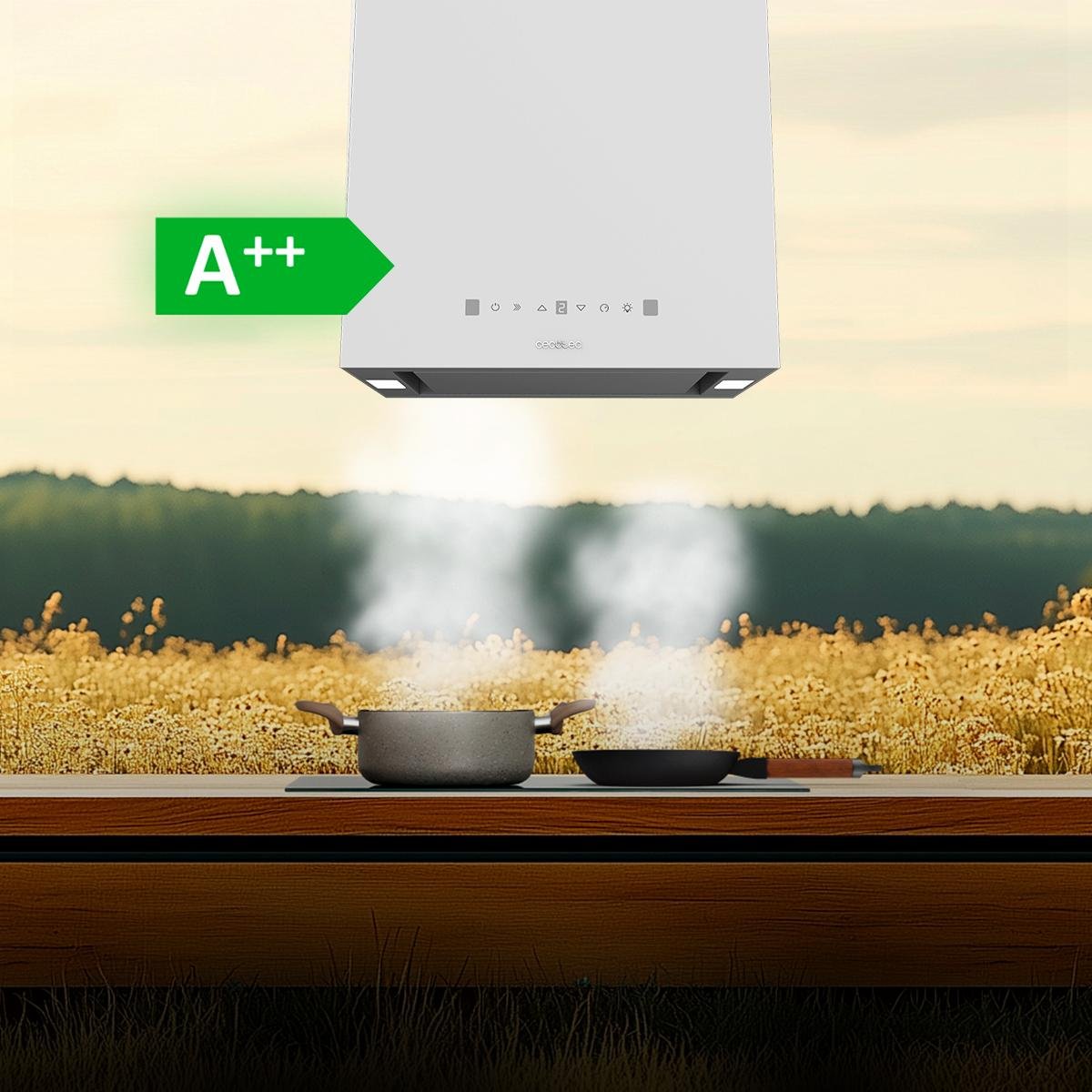 No solo tiene una estética única, sino que conseguirás también el máximo ahorro diario con su eficiencia energética A++, cuidando tu consumo en cada uso. Además, con sus 44 cm de ancho y sus acabados en blanco, esta campana combina funcionalidad y estilo que le aporta un toque extra a tu cocina.