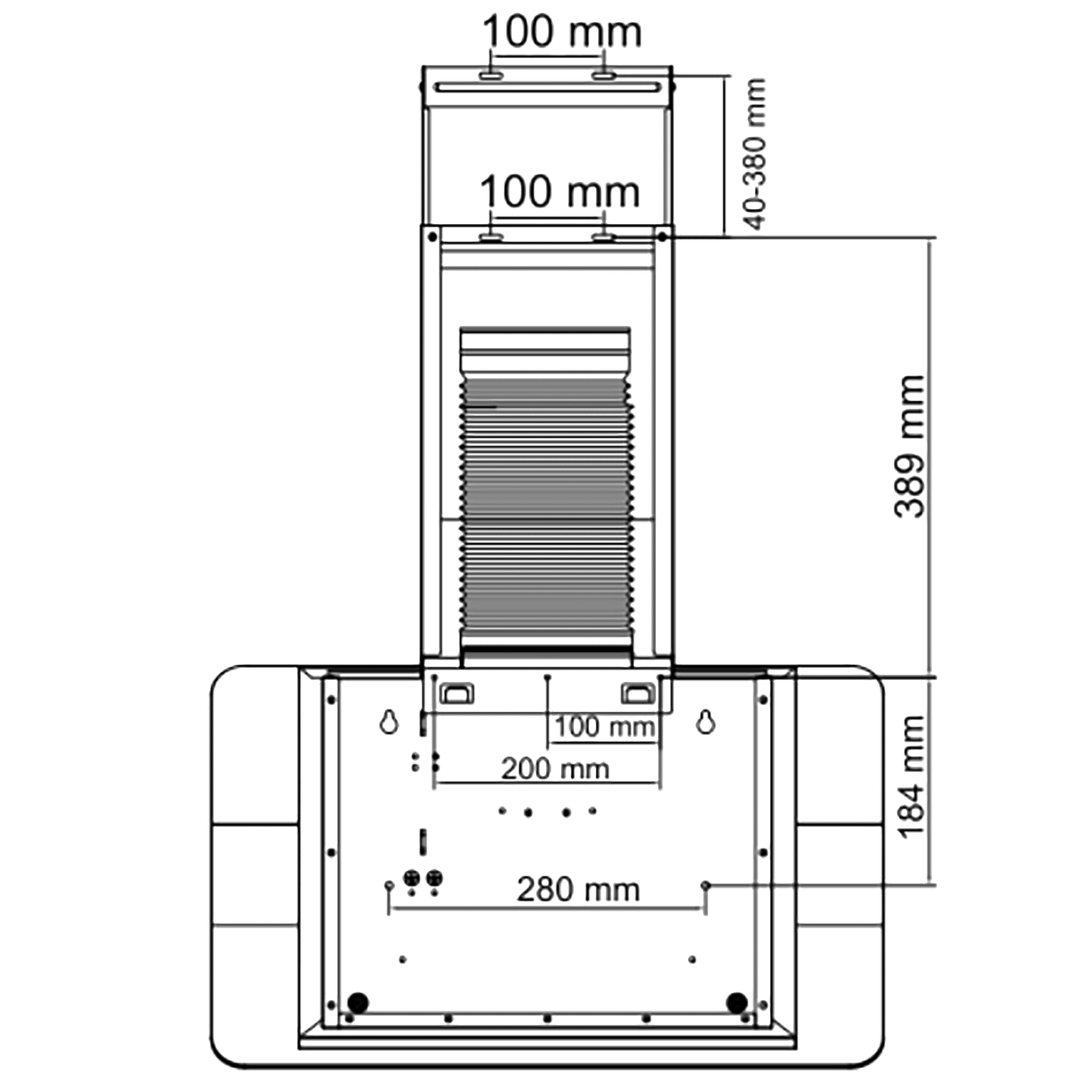 - Acabado frontal de vidrio negro: campana extractora con acabados frontales de vidrio negro, para un diseño estilizado y elegante.