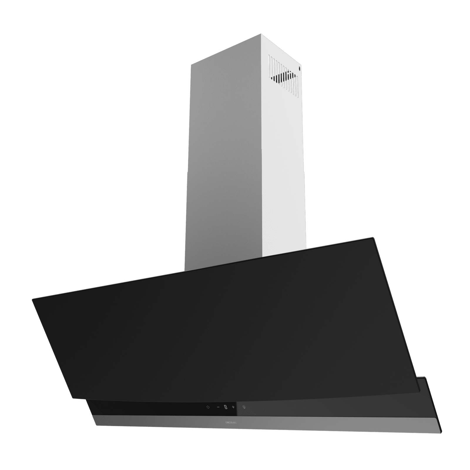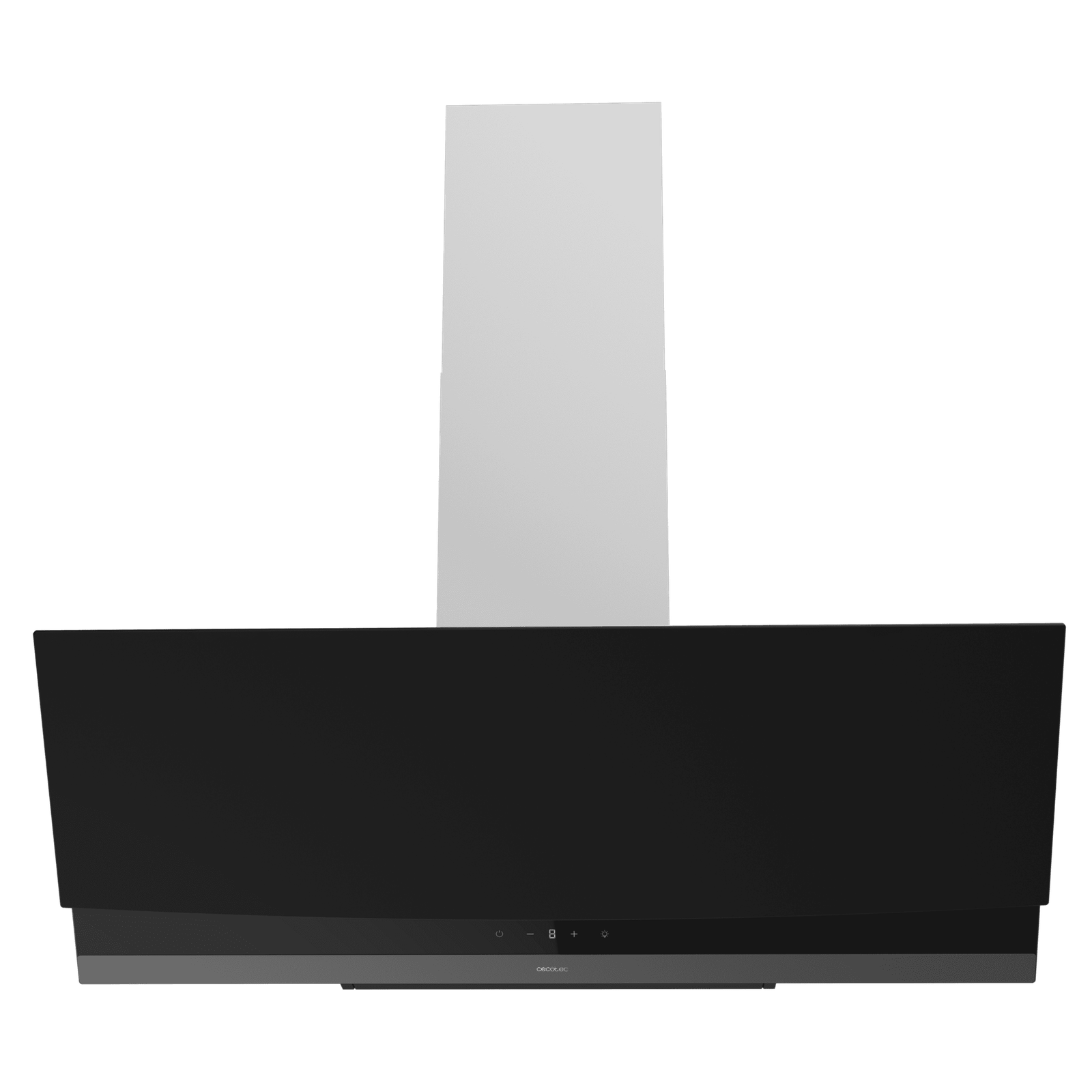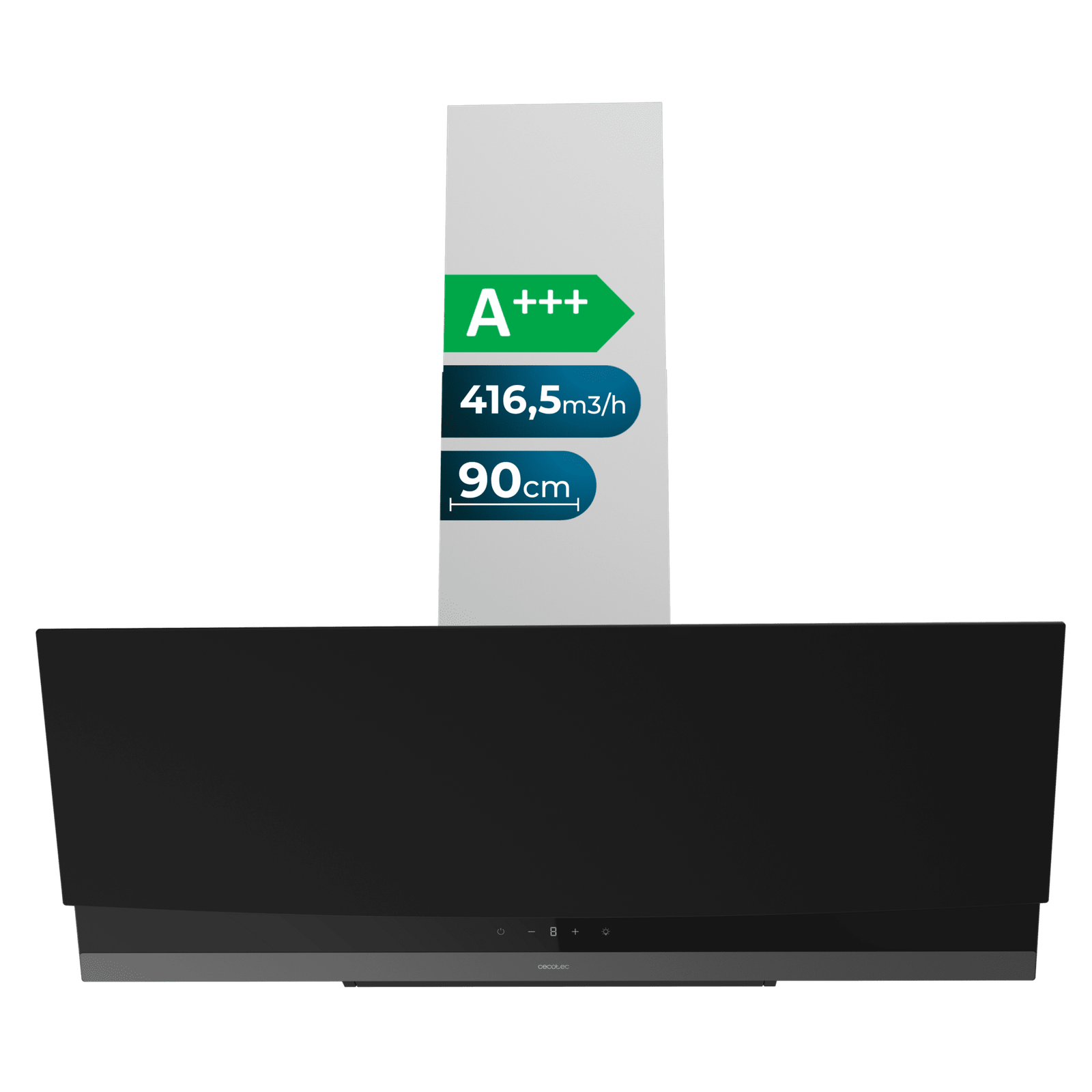 Bolero Flux DT 904400 Matt Black A+++ Cecotec Campana Extractora Decorativa de 90cm en Cristal Mate y Brillante, Chimenea Inox, con 416,5m³/h de succión, Clase A+++, Motor DC, Control Táctil Invisible, Hand Movement Control, 3 Velocidades, Función Booster, Luz LED, Filtros de aluminio, Opción de filtros de carbono incluídos.