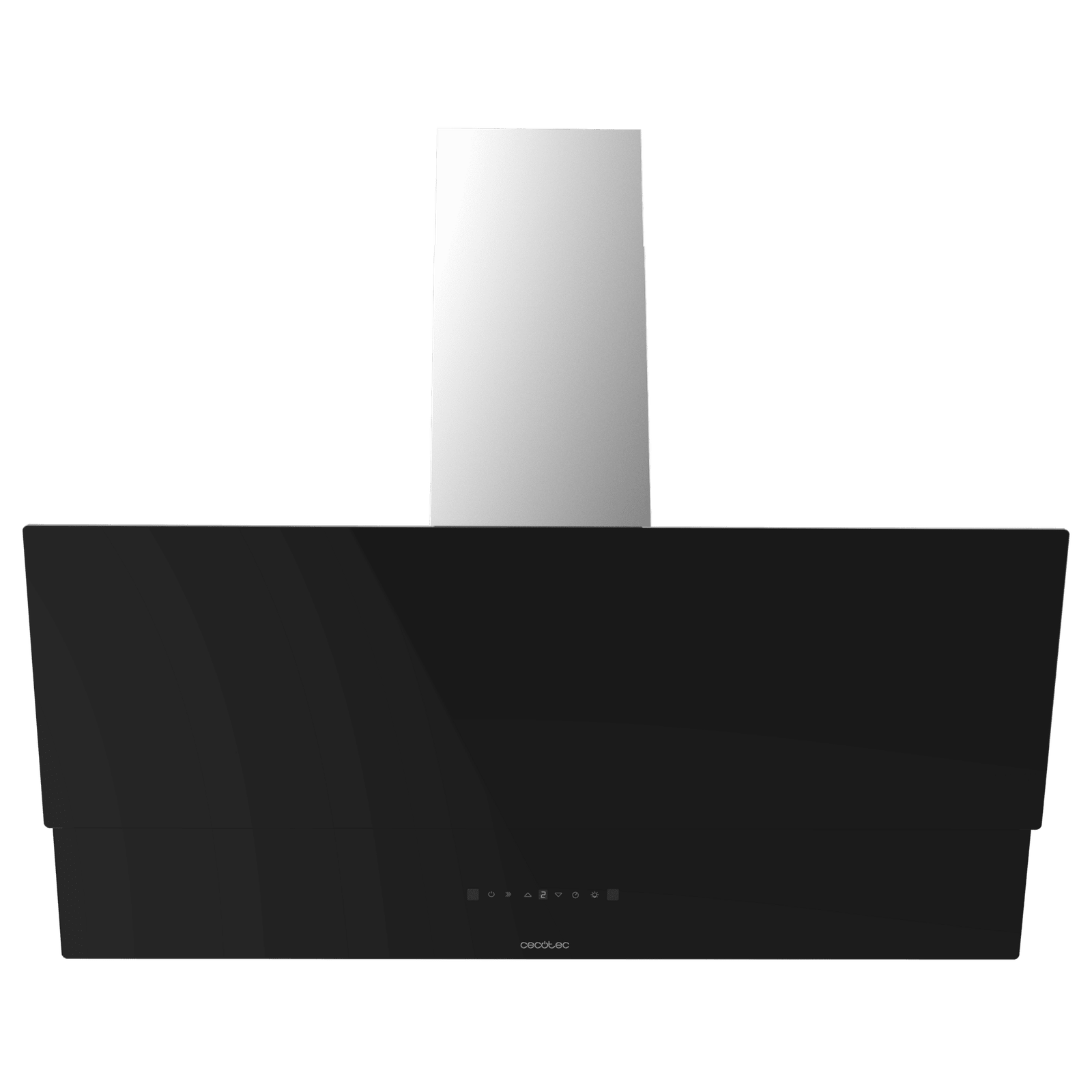 • Acabado frontal de vidrio negro: campana extractora con acabados frontales de vidrio negro y chimenea inoxidable, para un diseño estilizado y elegante.