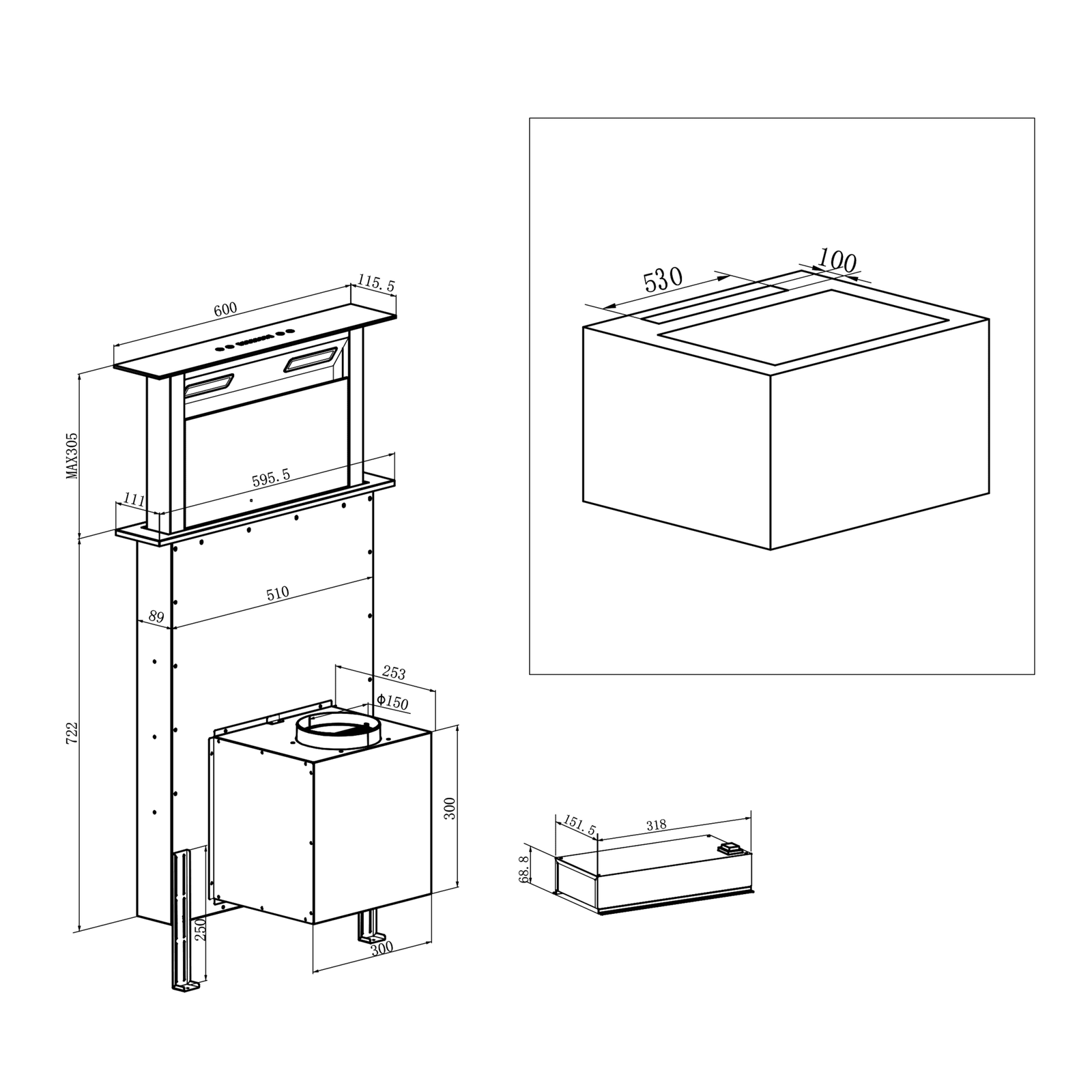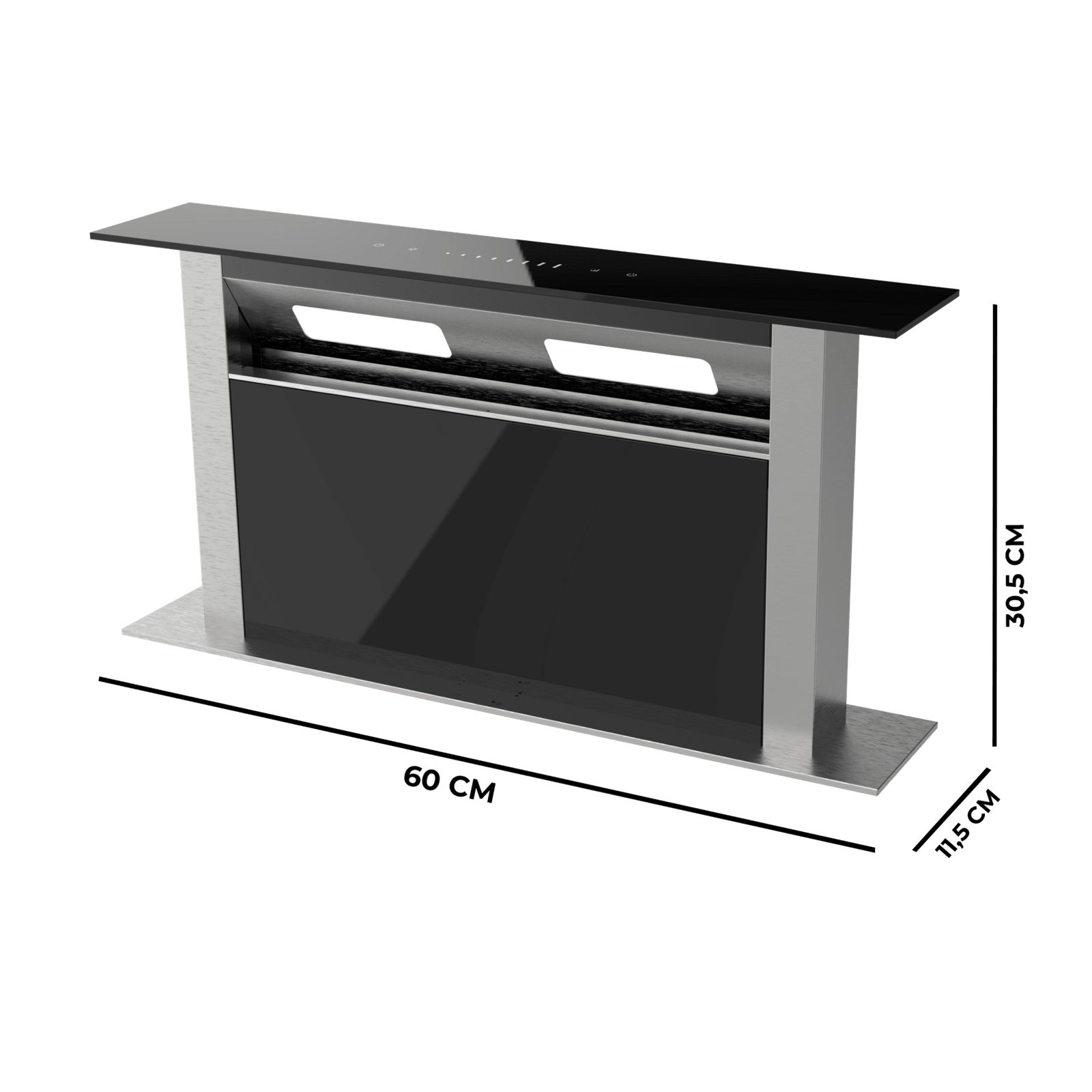- Campana extraíble de encimera de 60cm de ancho, maximiza el espacio de tu cocina con esta campana extraíble, que se oculta discretamente cuando no está en uso, ofreciendo un diseño limpio y funcional.