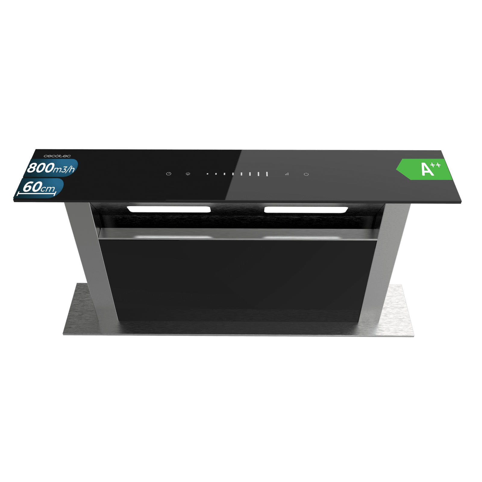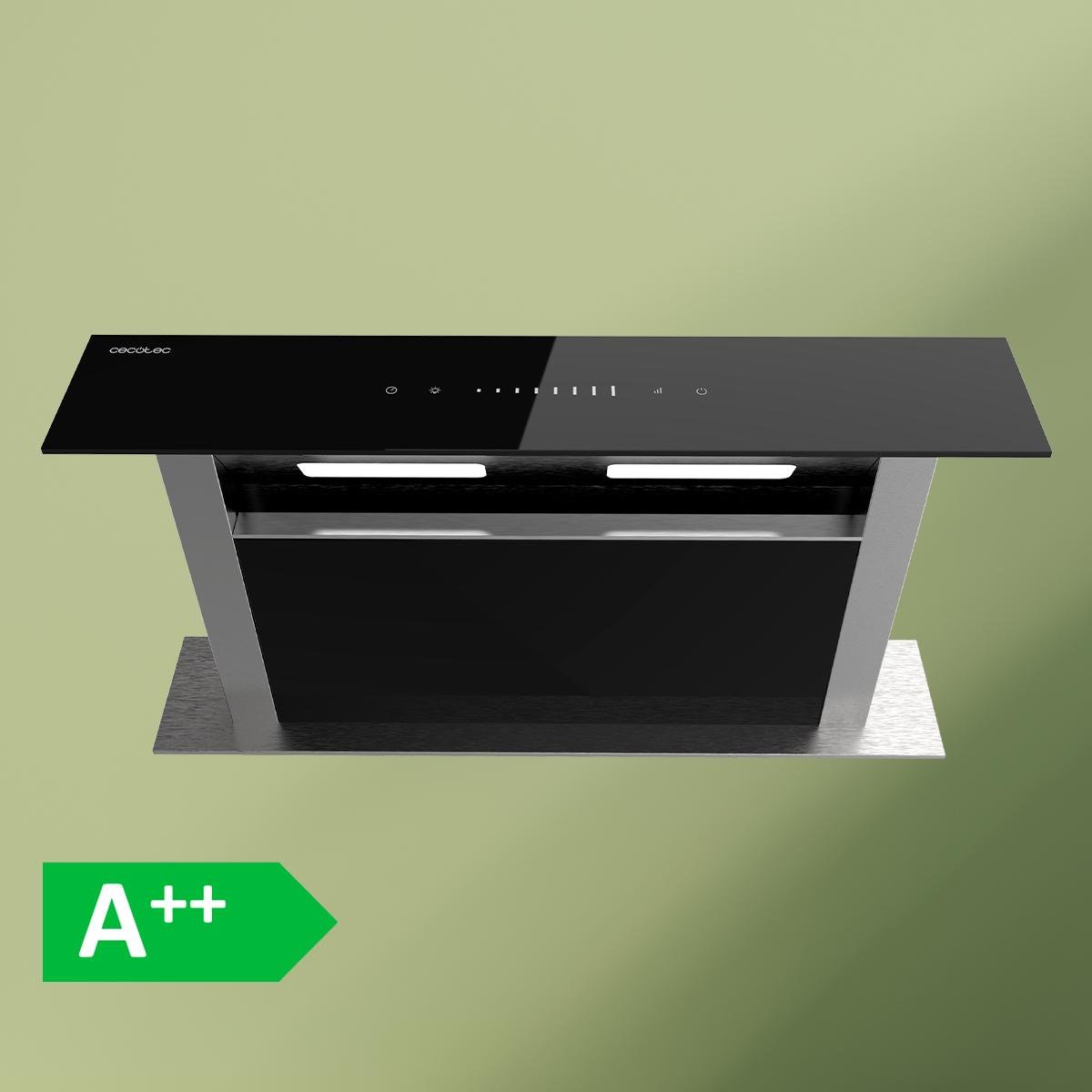 La campana extraíble de encimera cuenta con un ancho de 60 cm y acabado en vidrio negro para darle un toque diferencial a tu cocina. Pero no todo es diseño, su clase energética A++ te permitirá ahorrar en cada uso.