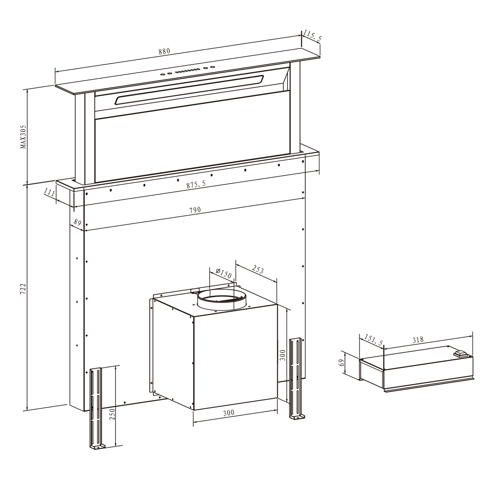 Su diseño incluye dos filtros de carbono de Ø176, ideales para eliminar tanto los malos olores como el humo. Además, cuenta con un filtro de grasa de 5 capas.
