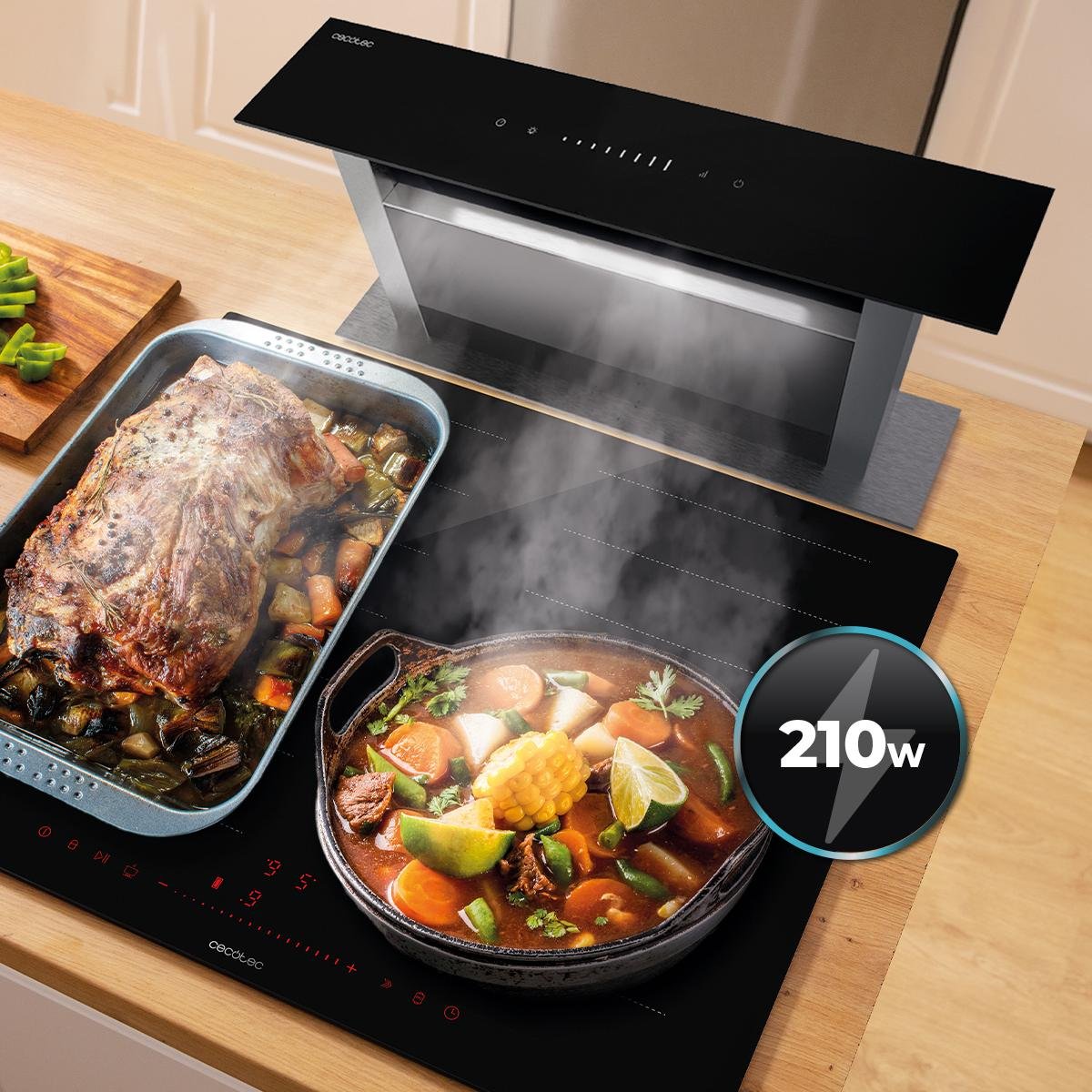 - Potencia de motor 210W, garantiza un rendimiento eficiente y silencioso, permitiéndote cocinar sin distracciones.
