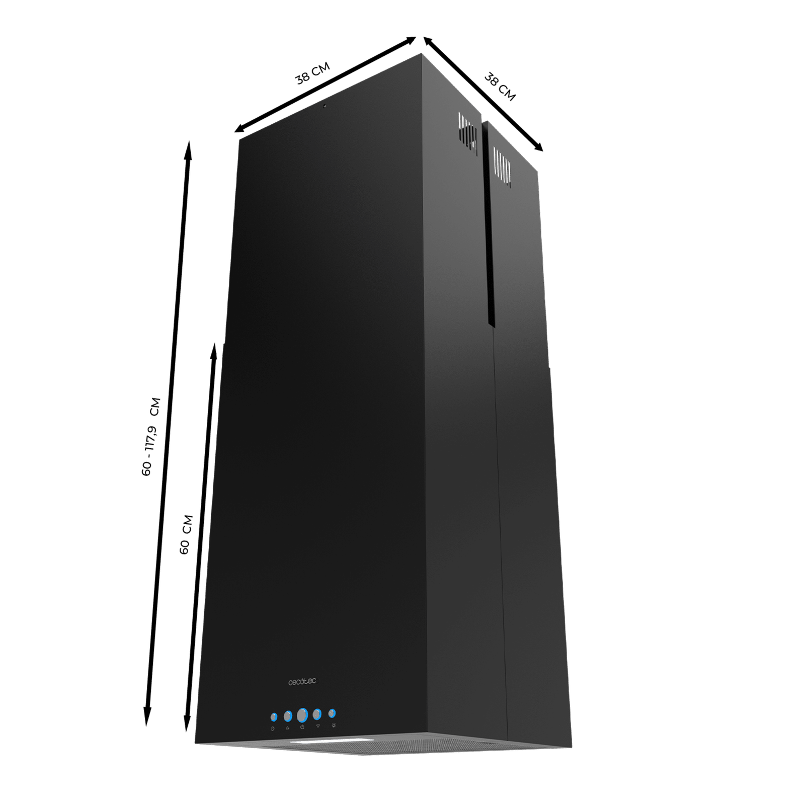 La campana de isla cuenta con un ancho de 38 cm y acabado en color negro para darle un toque diferencial a tu cocina. Pero no todo es diseño, su clase energética A++ te permitirá ahorrar en cada uso, todo ventajas.