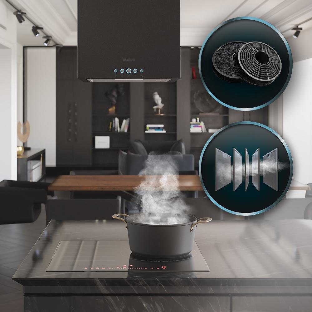 - Potencia para succionarlo todo: su potencia de motor de 210 W permite succionar todo el humo y vapores que haya en la cocina.