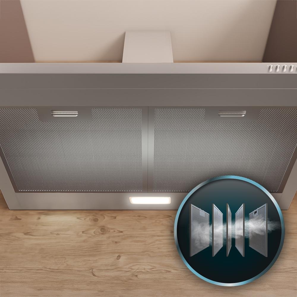• Protégete de la grasa: la campana extractora contiene un filtro de grasa de aluminio de 5 capas.